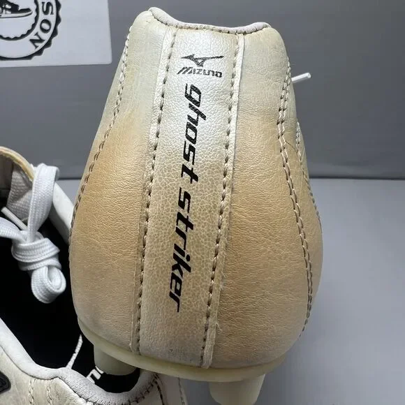 Mizuno GHOST Striker Elite Real Leather Gold Silver Men Sz 10.5 Preowned VintageGreat condition as compare to the age of the shoeNo rips or tearsSmoke freePet freeElevate your game with the Mizuno Ghost Striker Elite, a true classic for soccer enthusiasts. Crafted in Japan with meticulous attention to detail, these size 10.5 boots feature a luxurious gold and silver colorway that stands out on the pitch. The iconic Mizuno Ghost Rider model is known for its comfort and durability, making it a preferred choice for players who value both style and performance.The elite range of these boots boasts moulded studs designed to offer optimal traction and stability on various surfaces. Whether you're a seasoned player or looking to add a vintage touch to your collection, the Mizuno Ghost Striker is a testament to timeless sporting elegance. Note that the MPN is not specified, ensuring you receive a unique, unbranded experience on the field or the streets.