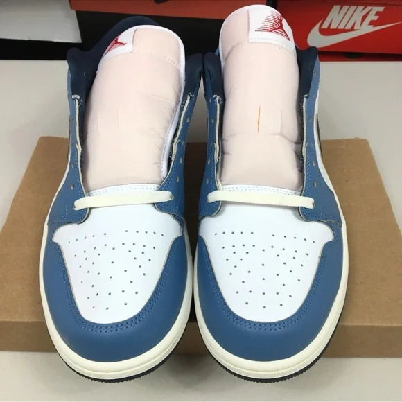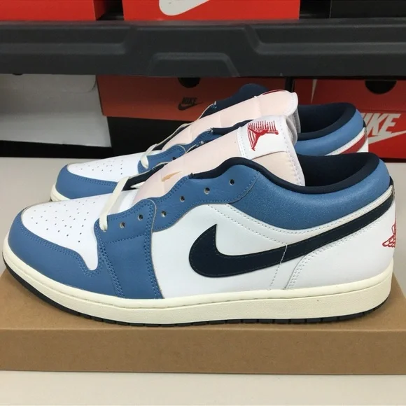 The Air Jordan 1 SE Low Motion Pack in Men's Size 10 is a stylish and sleek sneaker designed for athletic purposes. Featuring a low top silhouette and a leather upper material, this shoe offers both comfort and durability. The blue colorway adds a pop of color to your outfit, while the Jordan brand ensures quality and style. Whether you're hitting the gym or just hanging out, these sneakers are a must-have for any sneaker enthusiast.