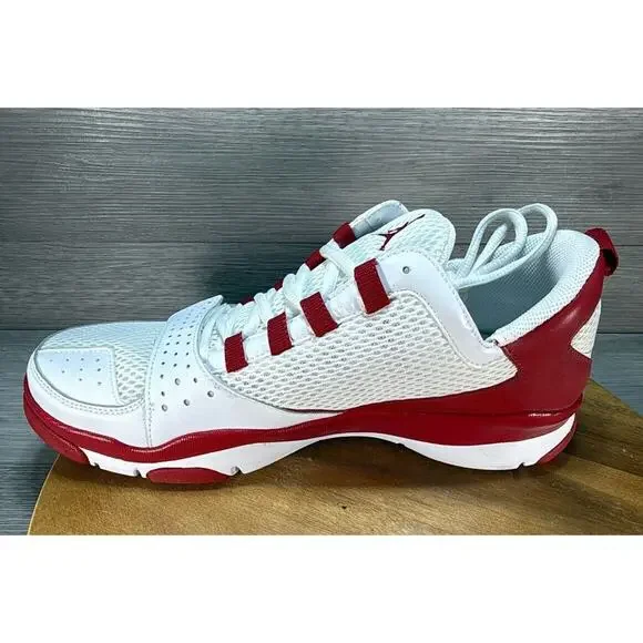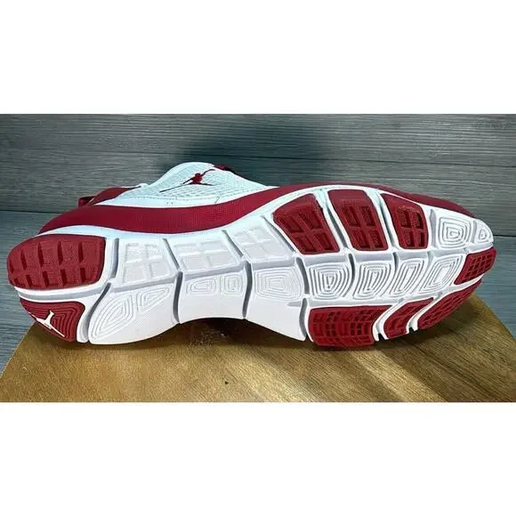 Elevate your sneaker game with these Nike Air Jordan Trunner Dominate sneakers. The varsity red and white colorblock design is eye-catching and perfect for any casual or activewear occasion. The lace-up closure ensures a secure fit, while the adjustable and breathable features make them comfortable for all-day wear.The mid-top shoe shaft style and rubber cleat type provide a sturdy support system for any performance or activity, from beach sports to basketball. The leather upper material and fabric insole offer durability and comfort, while the cotton lining ensures your feet stay cool and dry. These Jordan Trunner Dominate sneakers are the perfect addition to any sneaker collection.