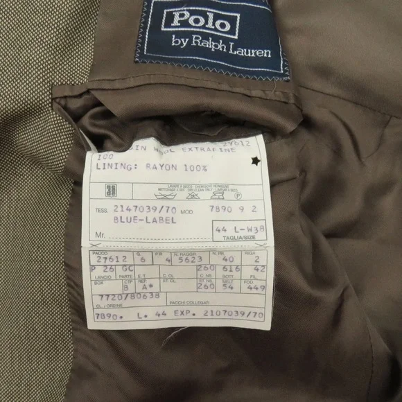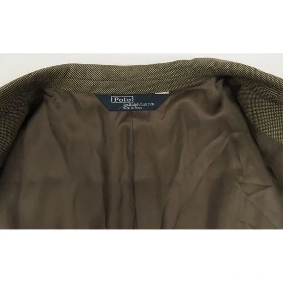 Description: NWOT Ralph Lauren Polo 100% Virgin Wool Extra Fine 3 Button Sport Coat Blazer Jacket-Three button closure -Two front flap pockets-Left chest pocket-Double vented back-Four button cuffs-Made in Italy-Notch collarSize (Check Measurements): Mens 44 LColor: BrownFabric: 100% virgin wool extra fineCondition: New Without TagsItem#: 66340Measurements are in inchesArmpit to armpit: 20 1/2"Back bottom of the collar to the hem: 30 1/4"Shoulder to shoulder: 20"Shoulder seam to end of cuff: 26"BUYING VINTAGE·We do our best to thoroughly inspect all items for any visible imperfections i.e., rips, repairs, holes, stains, etc. and note as such.·Please note vintage sizes are not always comparable to today's sizing. Please refer to the measurements in the description for a more accurate depiction of the true size. If an issue should arrive, please contact us prior to leaving a negative as we strive for providing excellent customer service.Please compare your measurements to the measurements provided in the listing description to ensure a proper fit. 63138