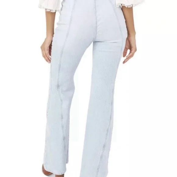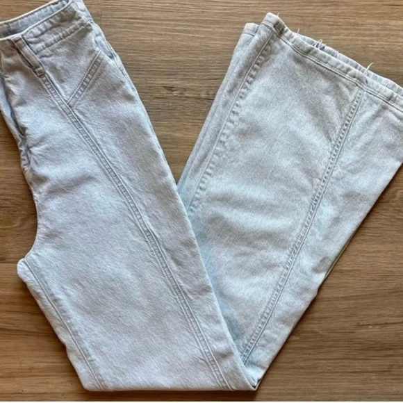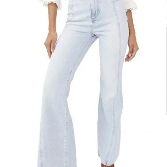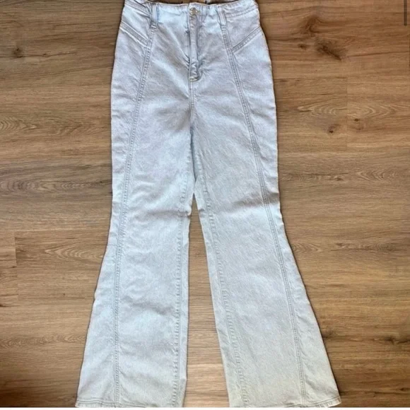 These high-rise jeans from Free People feature a classic 1970s-inspired bell-bottom style with a dramatic flared leg. The light blue denim offers a smooth, uniform wash, providing a vintage look with a modern twist.Free People JeansFlorence Flare Jeans StretchWe the FreeHigh Waisted Women’s Size 26 Never WornNew Condition NWOT Blue indigo white Light wash Fall summer winter spring pants Vintage inspired Offers welcome Bundle to saveFast shipping Top rated seller Questions? Leave a comment below!