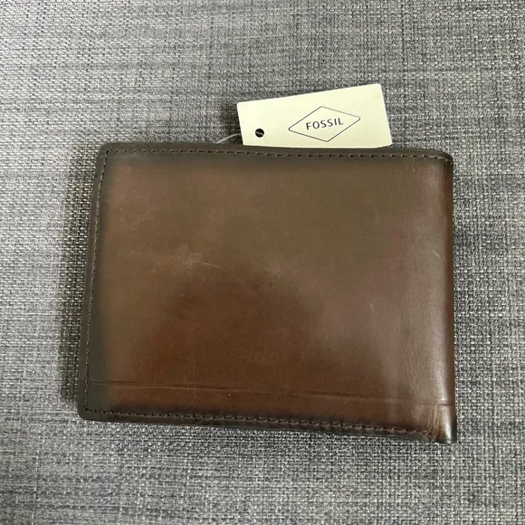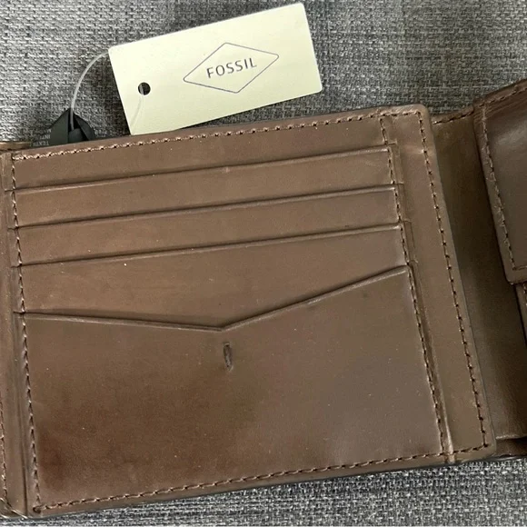 BRAND NEW WITH TAG HARD TO FIND FOSSIL BIFOLD SMALL WALLET GENUINE LEATHERDARK BROWN OLD ENGLISH BRASS HARDWARECOIN ZIPPER POCKET ON THE BACKBIFOLDED WITH SNAP CLOSURE ONE CURRENCY COMPARTMENTONE ID & FIVE CREDIT CARD SLOTS APPROXIMATELY 4"L X 3.5"H MATCHING WITH BAGS I HAVE FOR SALEBUNDLE AND SAVE!! 👜👛PET & SMOKE FREE HOME 🌺PLEASE SEE MY ENTIRE COLLECTION🕶️👛👜💼🎒💍👗🕶️