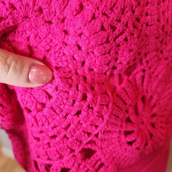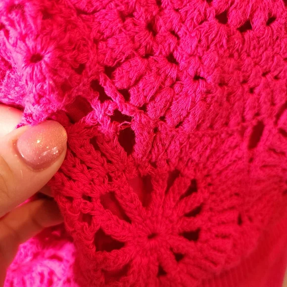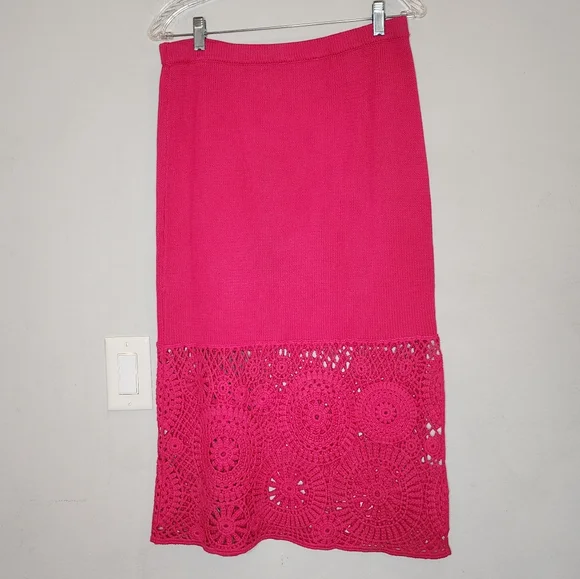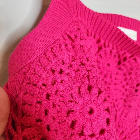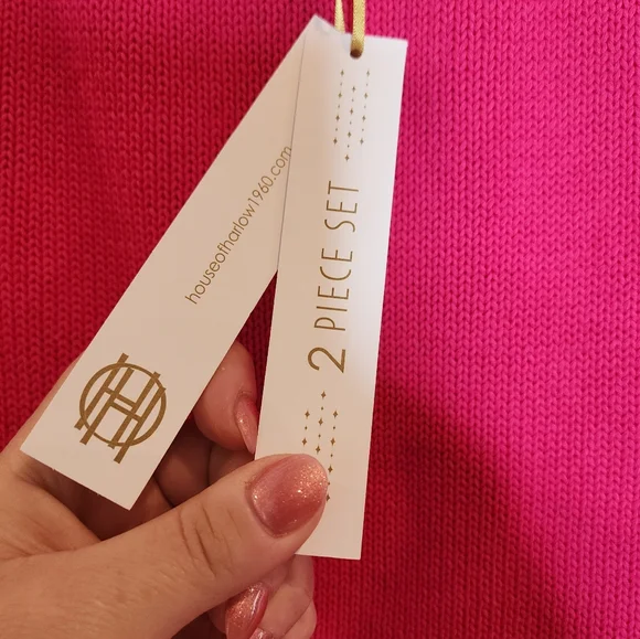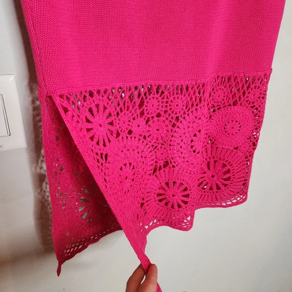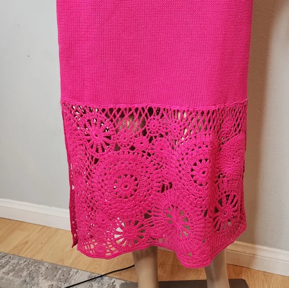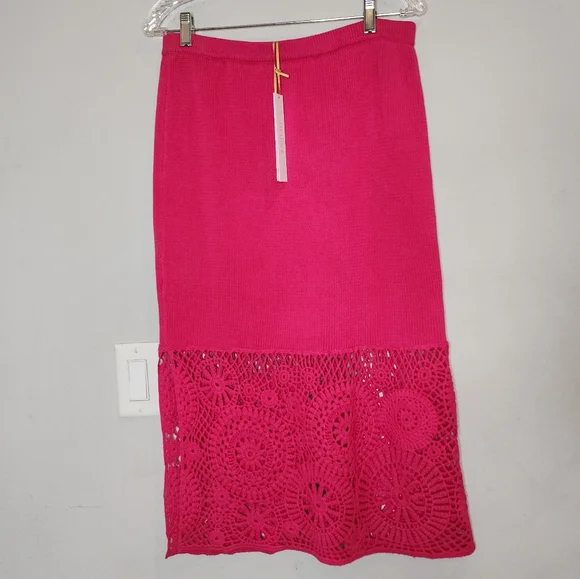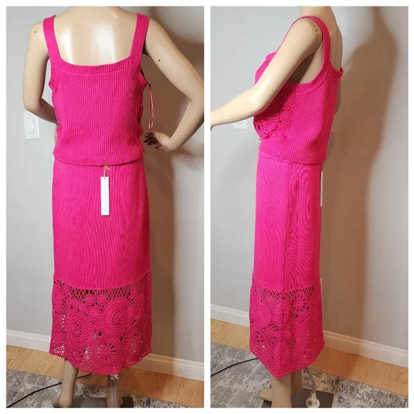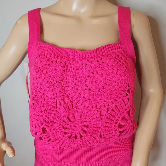 house of harlow 1960 pink 2 piece crochet knit set. midi skirt with tank. both pieces in size mediumsee photos for approximate measurements to ensure fit.modeled on my xs 5'8" mannequin.skirt: waist flat across stretches from about 14.5"-18".pull on stretch100% cotton New with tag (only attached to the skirt). however a little call out I've pointed out in the photos on the top. see last pics.side slit1lb 4oz8171