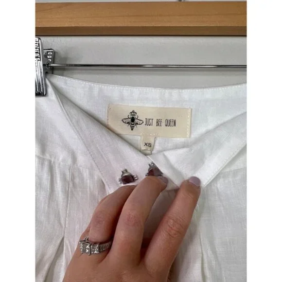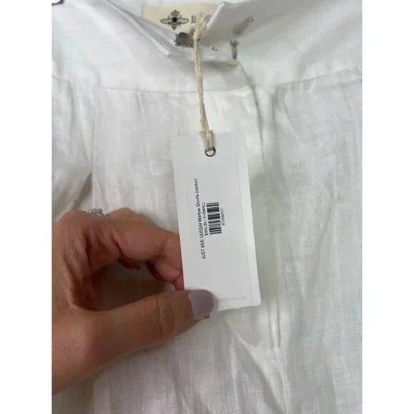 Just Bee Queen High Rise Linen Pockets Marlow Chino Shorts White. New with tag! Size: XSFabric: LinenHigh riseThigh lengthFly zipPocketsStandard fitshorts, bottoms, white, womens, pockets, highrise, chinoshorts, linen, thigh, standardfit, solid, casual, flyzip, summer, fall, springJust Bee Queen High Rise Linen Pockets Marlow Chino Shorts White