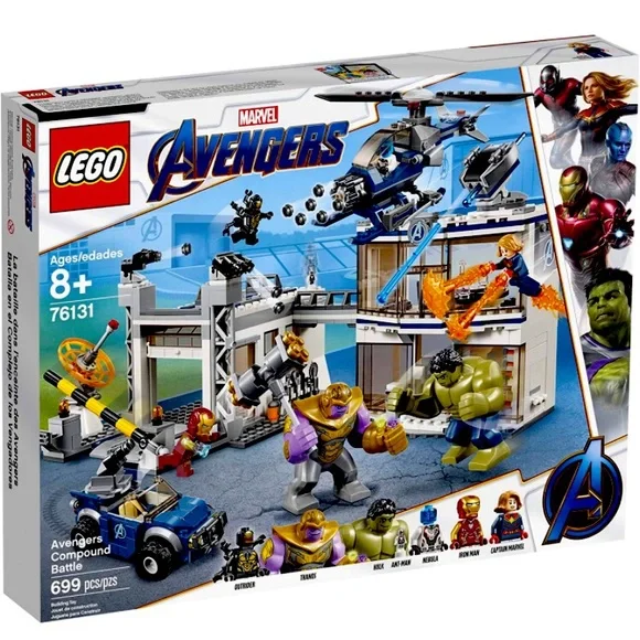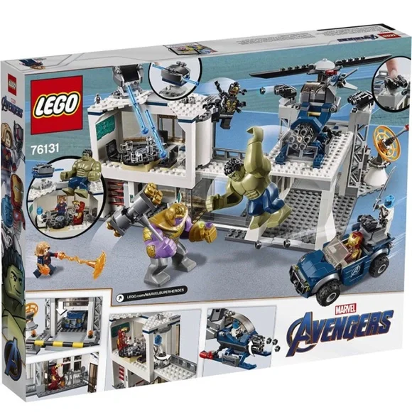 NWT LEGO Marvel Avengers Compound Battle 76131 Set (699 pieces) Condition: New in Box, Sealed *Retired product, no longer manufactured** Lego Release Date: 01 Apr 19 - 27 Mar 2021 (retired) I purchased this set for full price from Lego store for my child and it was never opened. ** All low ball offers will be declined ** When sending offers, please also remembertakes 20% of your offer price. Stage a thrilling 76131 Avengers Compound Battle and defeat Thanos and the Outrider with this LEGO® Marvel Avengers toy building set! The Avengers headquarters features a 2-level office building with a meeting room—including a table with a secret gun compartment, an opening ‘laser-beam' safe, helipad, garage, rooftop spring-loaded shooter and dual stud shooters, plus a rotating, tilting radar. This popular toy construction set also includes a buildable toy helicopter with adjustable, spinning rotors and 6-stud rapid shooter, and an offroader with a rotating turret with dual stud shooter. Play out thrilling scenes from the Marvel Avengers movies with 4 minifigures, an Ant-Man microfigure and posable Hulk and Thanos big figures.Bin: L2#lego #marvel #avengers #76131 #compoundbattle #NWT #retired #hulk #thanos #nebula #ant-man #captainmarvel #outrider
