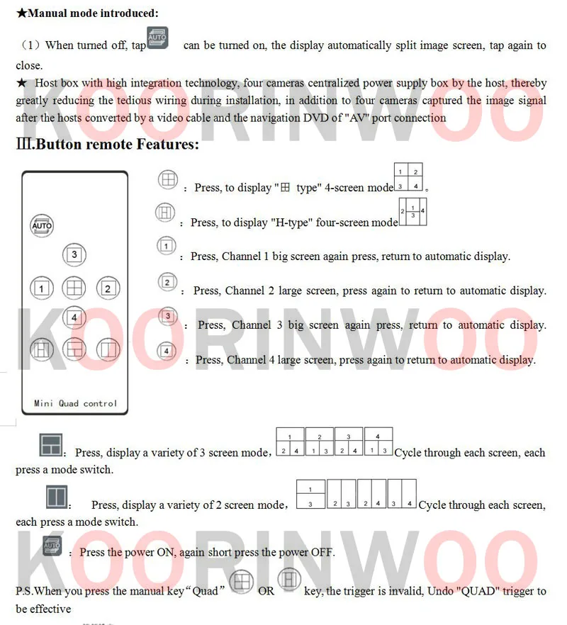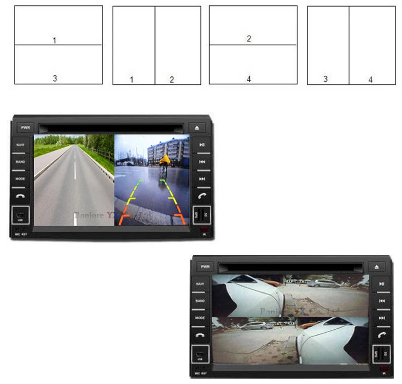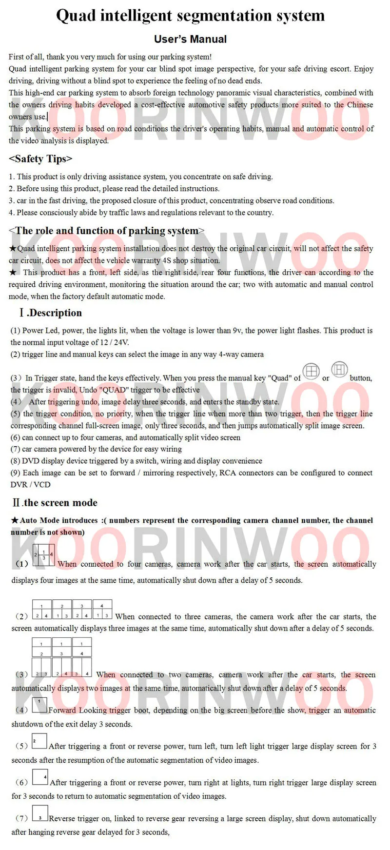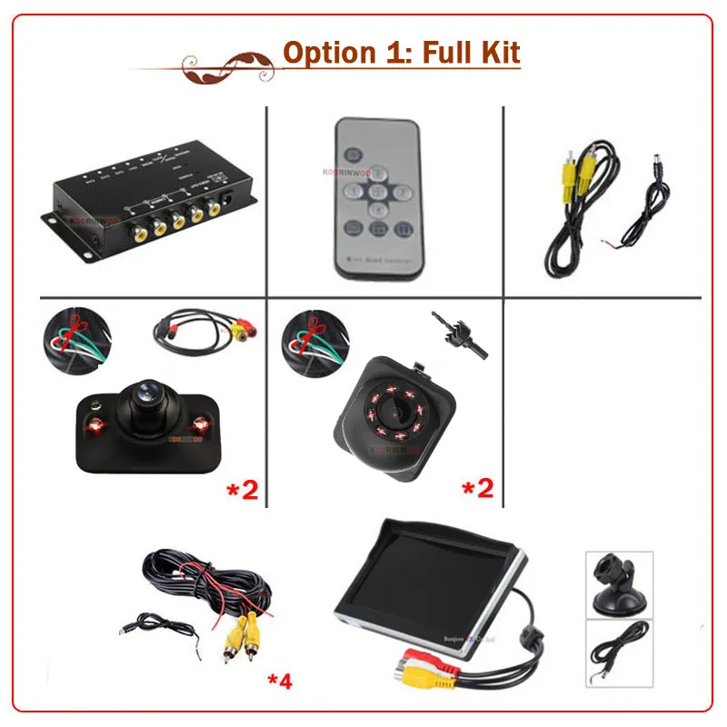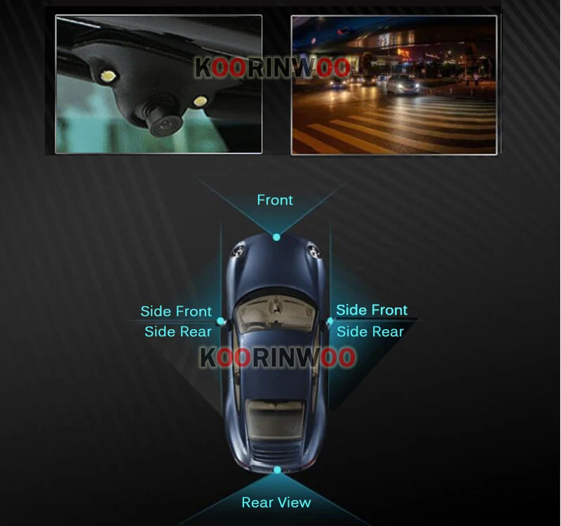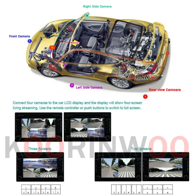OOWLIVEE LCD Monitor With 360 Around view Split Parking For Cars Camera 4 Channels Box IR Left Right Front view Camera Rear view