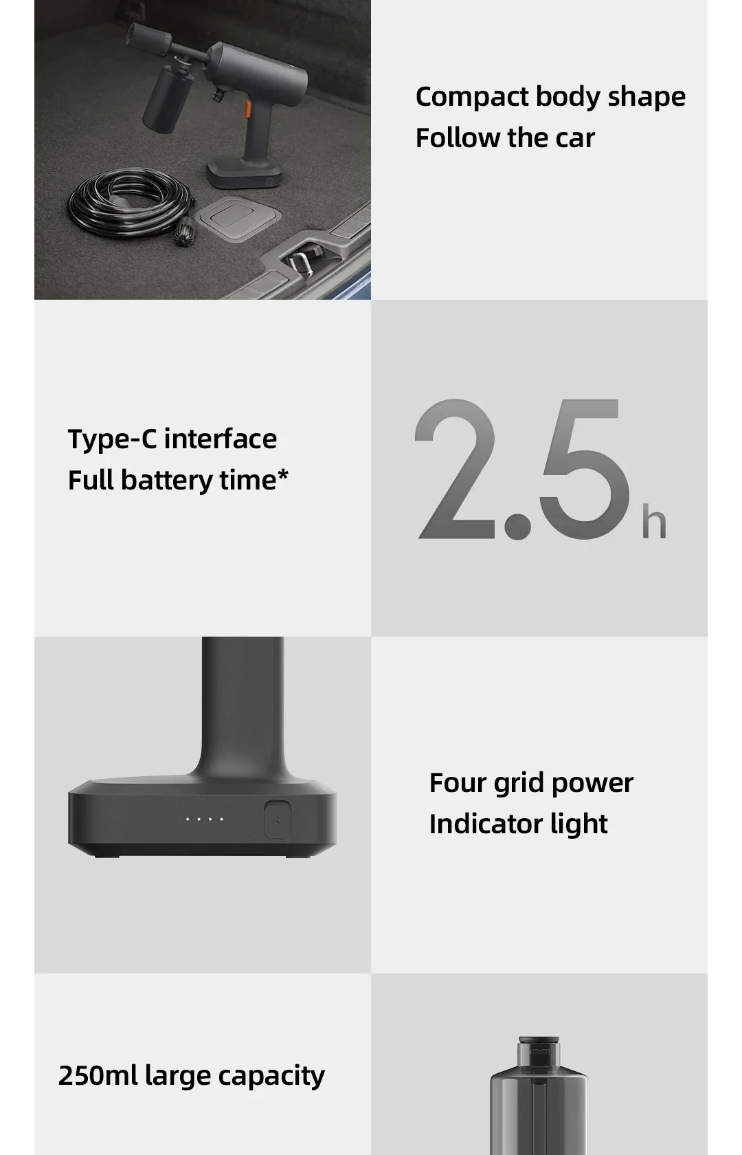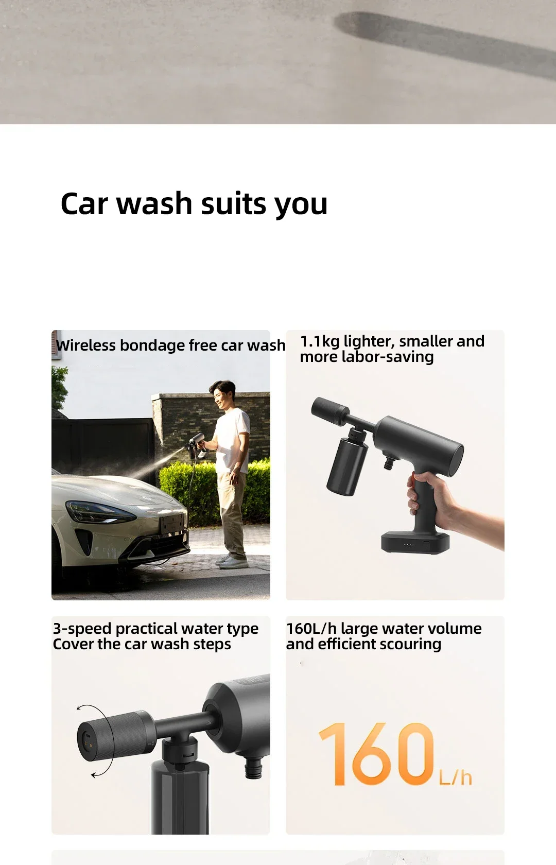 Original Xiaomi Mijia Wireless Car Washer 2 160L/h Large Water Volum Efficient Flushing High Pressure Wireless cleaning Lavage