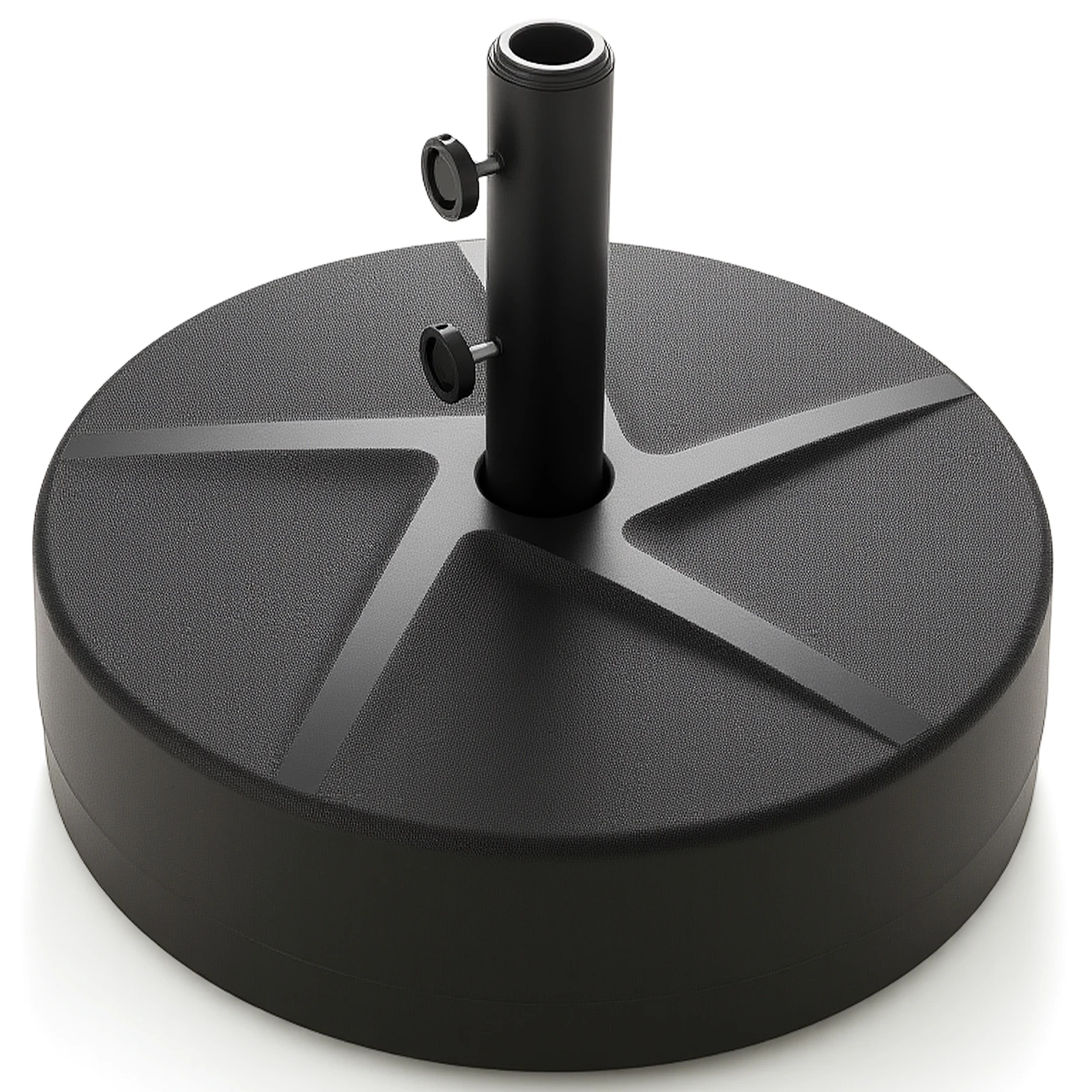 Refillable umbrella base provides customizable weight to stabilize your patio umbrellas Crafted with waterproof, crack-resistant HDPE material Equipped with 2 turning knobs for snug fit 3 umbrella hole ring sizes perfectly fit umbrellas with pole diameters of 1.42"/1.5"/1.89", 48/38/36 mm Fits 6/7.5/10/12 ft patio umbrellas Easy to assemble without any additional tools Stylish spiral pattern brings charm to your outdoor space Featuring non-slip design to keep the umbrella stand in place Note: The umbrella is not included