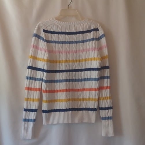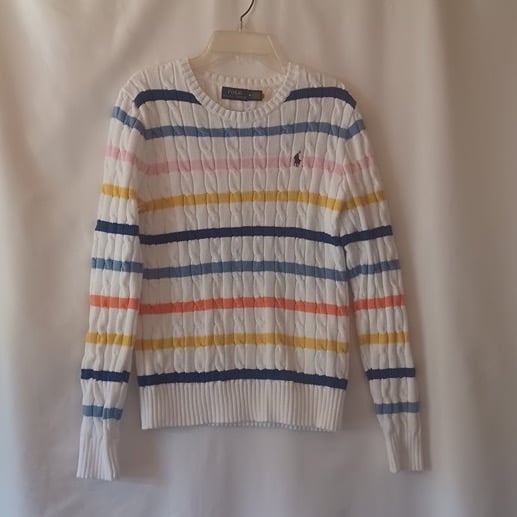 Polo Ralph Lauren Julianna Striped Cable Knit Crew Neck Sweater Women's Size M. Like new! No holes, tears, snags, pills or stains! MSRP $299! Ralph Lauren partners with 'Better Cotton' to improve farming globally.