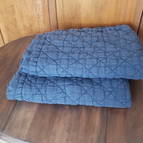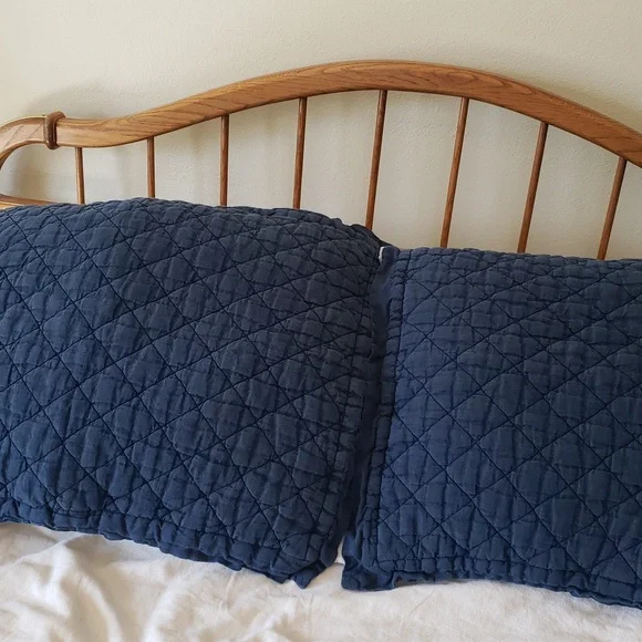 Pottery Barn Belgian Flax Linen Diamond Quilted Pullow ShamSet of 2 Standard Size Shams in 'Midnight'Linen woven from 100% Belgian Flax linen,Quilt is 100% polyester batting,Reverses to solid linen fabric,Color variations are inherent to natural fibers, slight variations may occur,Machine wash,Envelope closure,20" x 26"Excellent condition!