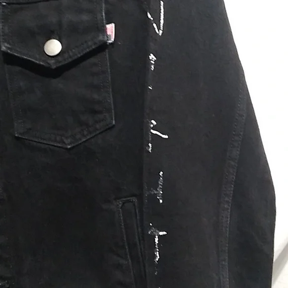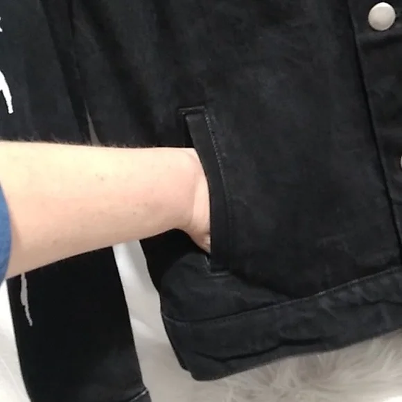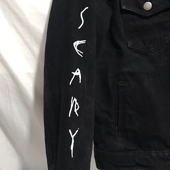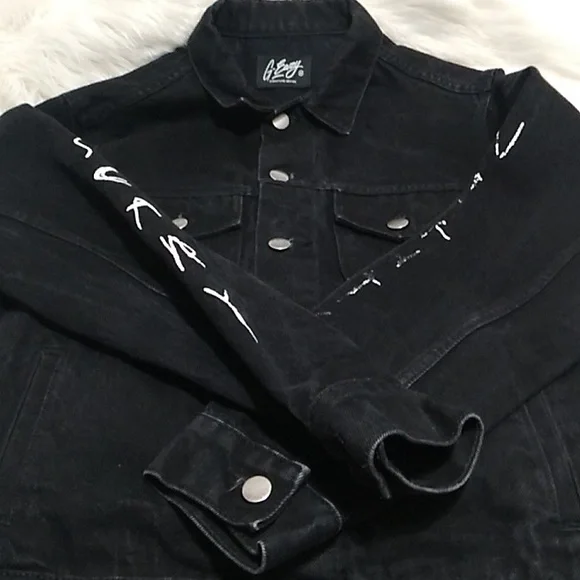 First picture is of the back! G-Eazy Signature Series Scary Nights button up black jean jacket!! Size medium! The print on the left sleeve is a tad worn off but the rest is in great condition!Measurements Laying Flat: Pit to pit: 20".Length: 25".Sleeve Length: 25".Smoke And Pet Free Home! Reasonable Offers Always Welcome!