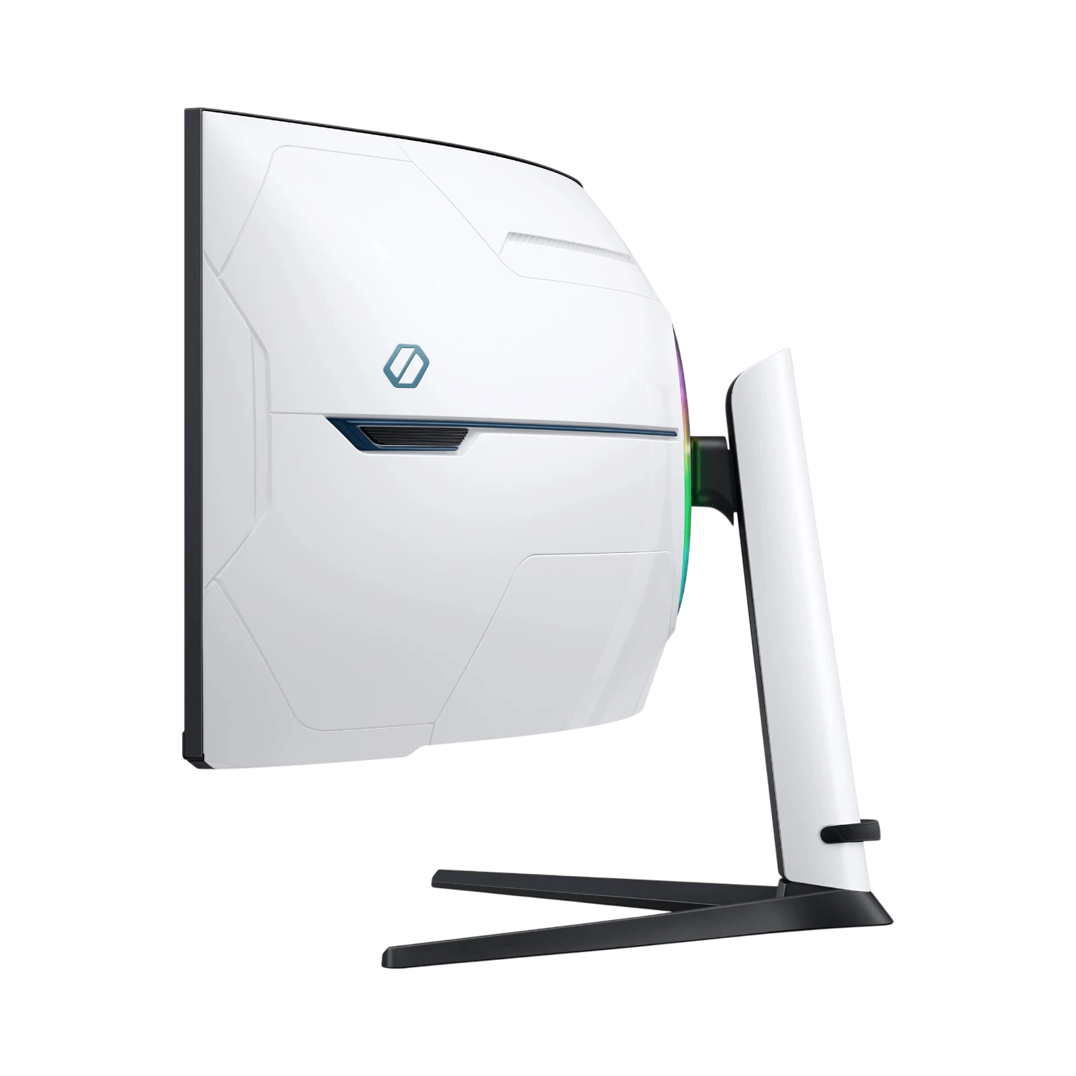 The stand adjusts for height, tilt, and swivel, so you can place the screen at a comfortable angle whether you sit center-front for gaming or off to the side while editing video. Mounting points follow the VESA standard if you prefer an arm or wall mount. Altogether, the Odyssey Neo G9 is well suited to immersive gaming setups, studios that juggle multiple applications, or offices that need panoramic spreadsheets without multiple monitors.