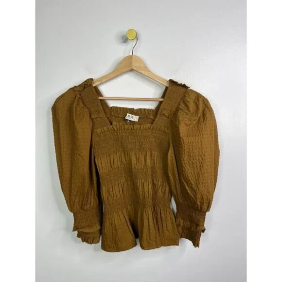 Sea New York Sevyn Solid Seersucker Long Sleeve Smocked Top Women's Brown. New without tag!Size: XS (Missing size tag)Fabric: 52% polyester, 48% cottonRelaxed topPuffed sleeves Smocked neckline The SEA Sevyn Solid Seersucker Long Sleeve Smocked Top features the feminine details you love from this designer. This top has puffed sleeves with a smocked neckline in a lightweight seersucker material. Tuck yours in to high rise pants this season. top, blouse, longsleeve, brown, womens, lightweight, smocked, puffedsleeve, casual, modern, classic, chic, spring, summer, winter, fall, seaSea Sevyn Solid Seersucker Long Sleeve Smocked Top Women's Brown.