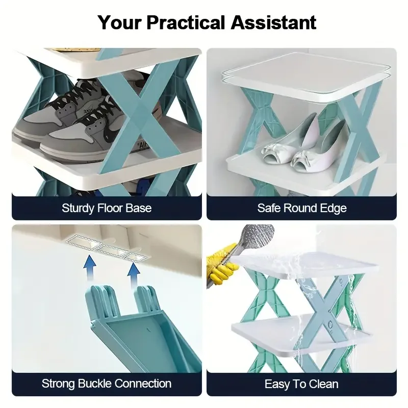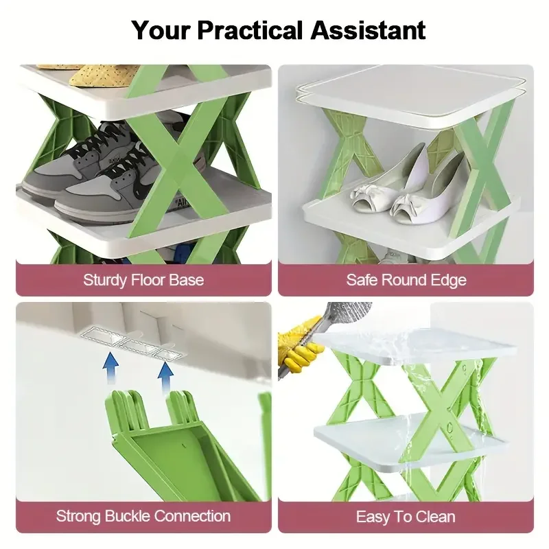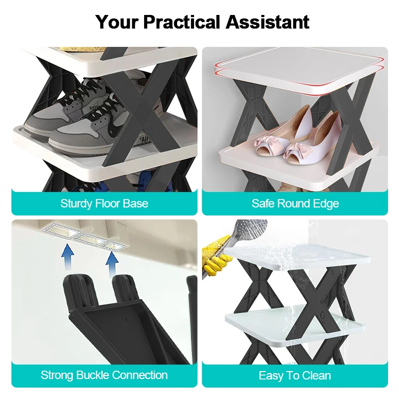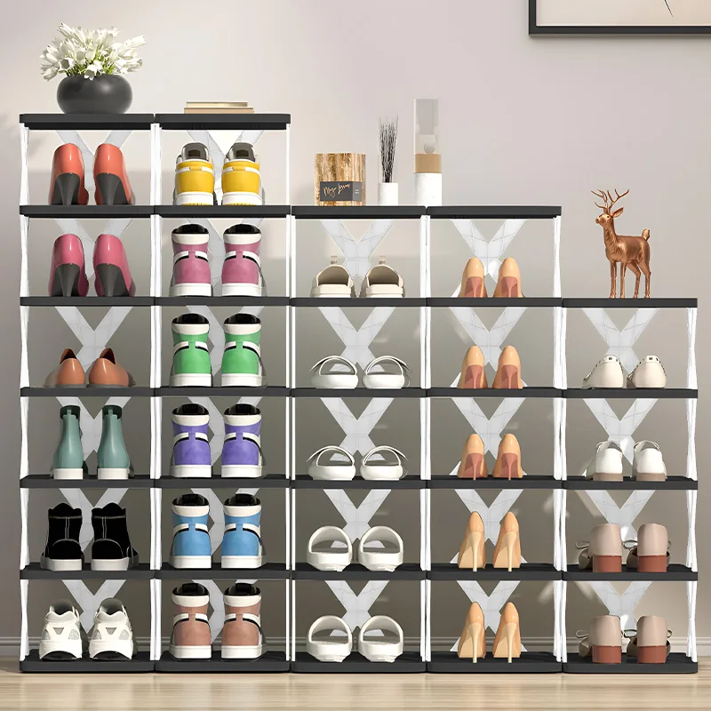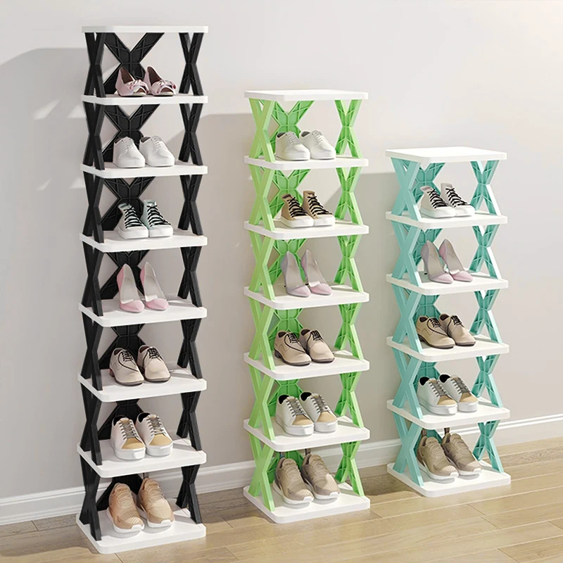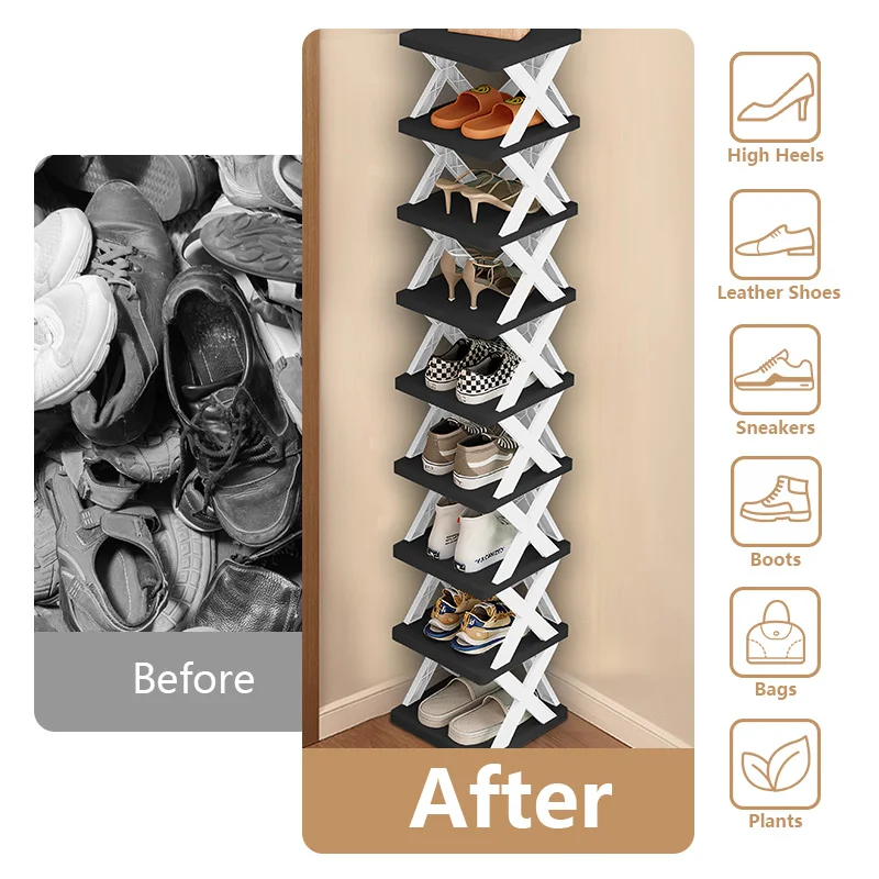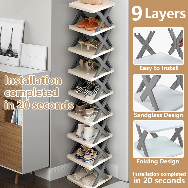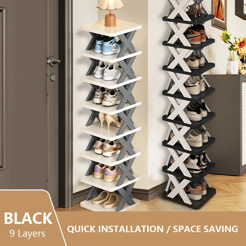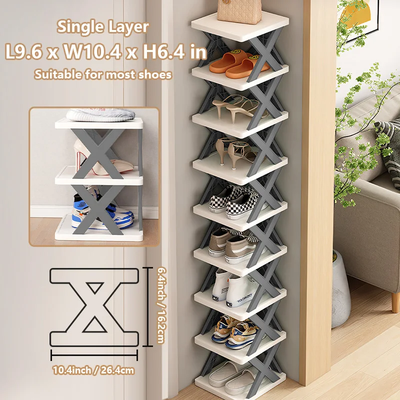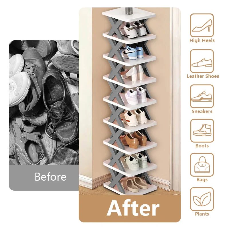 t Description: 9-Tier Shoe Rack Narrow Entryway Storage Organizer Plastic Detachable Shoe Shelf Space-Saving Closet Living Room Dorm Storage
