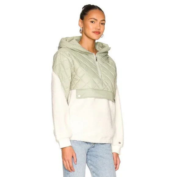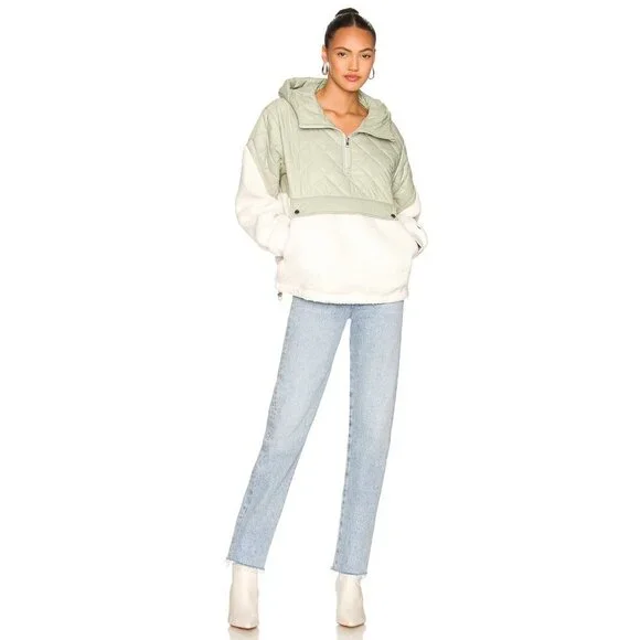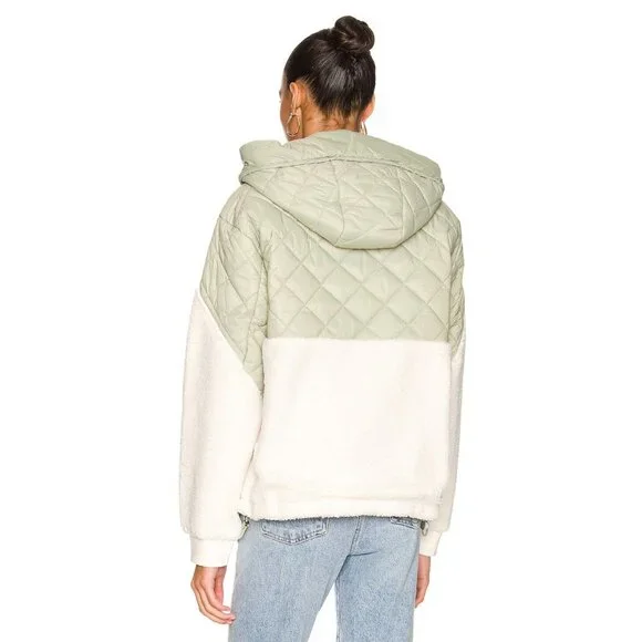 Soia & Kyo Nicolette Jacket in Sage & IvorySize Small$325Condition: Like NewSelf: 100% recycled poly.Contrast Fabric: 100% nylonMade in ChinaMachine washPartial front zipper closureDrawcord hood and hemKangaroo pocket with buttoned flap.Puffer fabric with fleece accent fabricRibbed cuffsRevolve Style No. SOIA-WO461Soia & Kyo Nicolette Jacket in Sage & IvoryRVL827