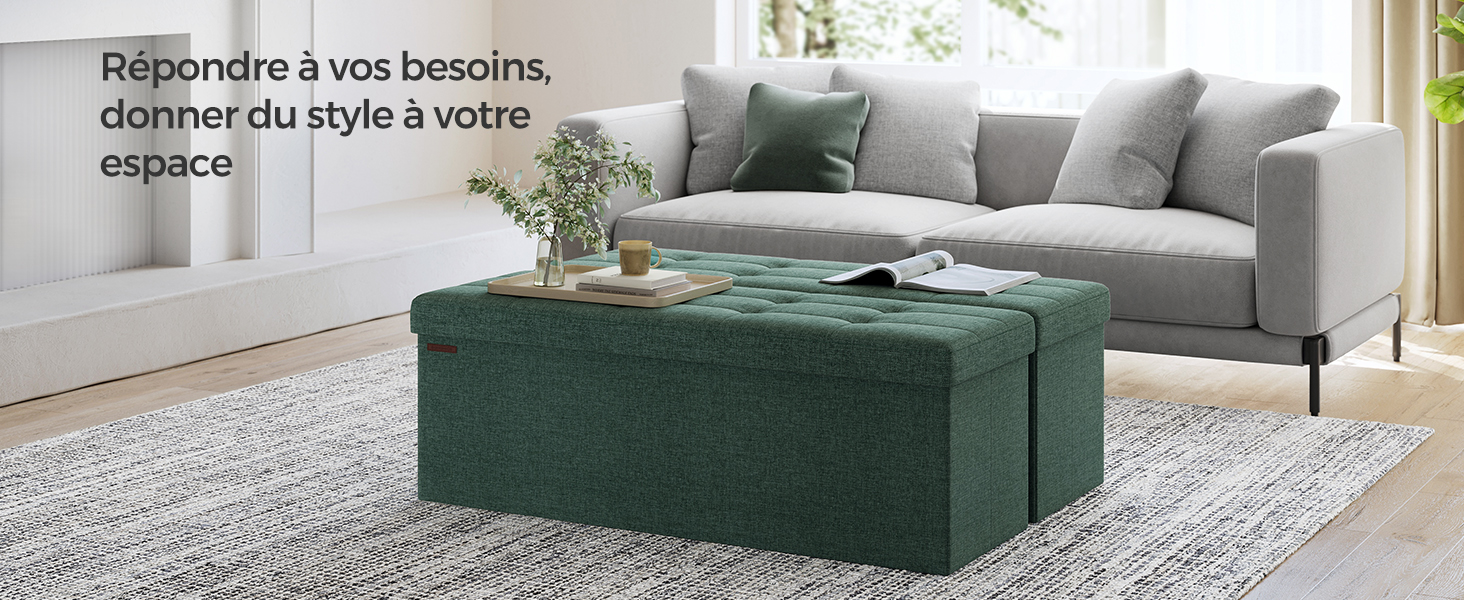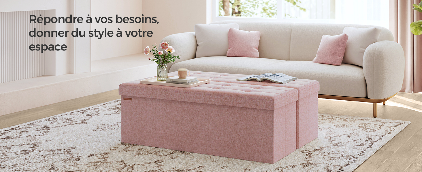 [Élégant et robuste] Ce pouf est doté d’un élégant tissu façon lin avec de fines coutures. Des protège-coins en métal renforcent le couvercle et d’épaisses planches en panneaux MDF soutiennent le dessus et les côtés,il peut supporter jusqu’à 300 kg