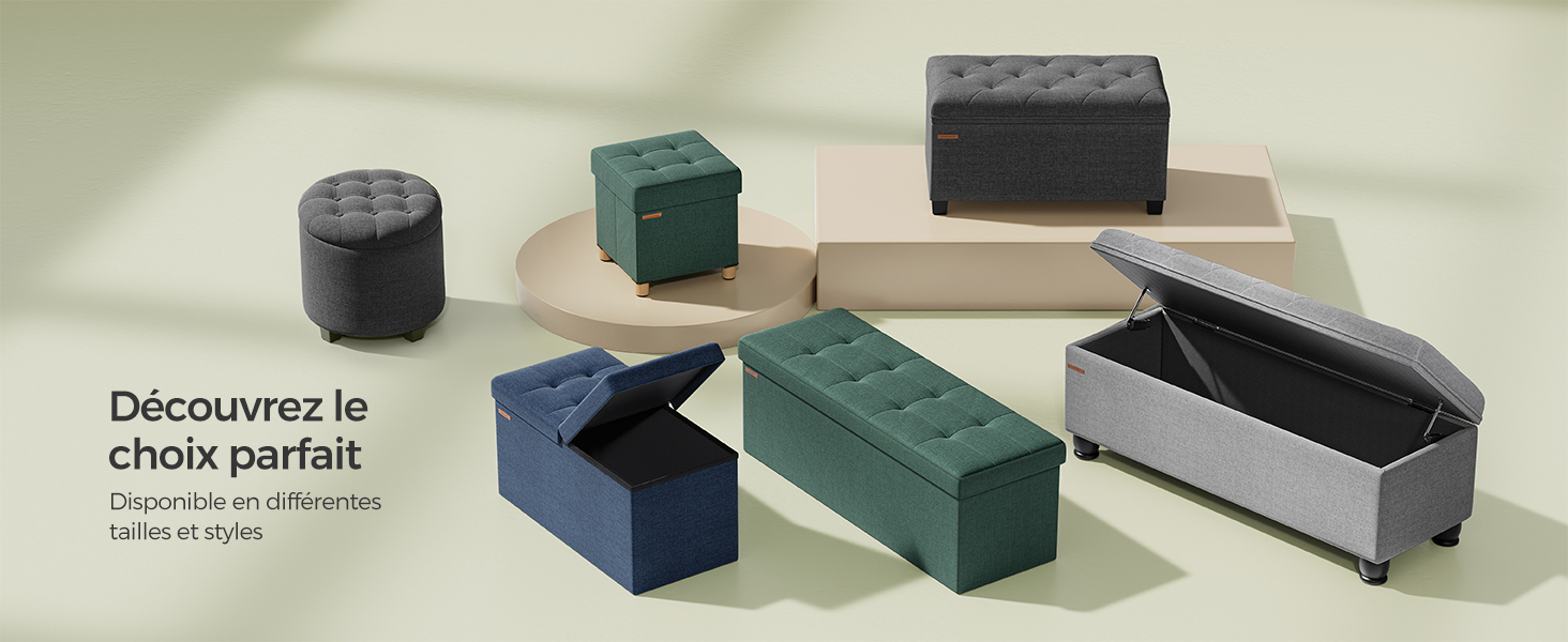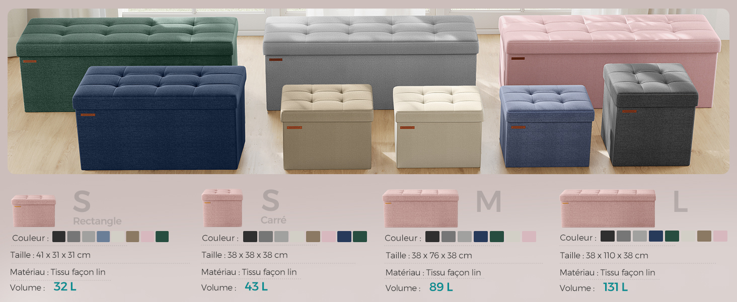 Trouvez votre coffre à trésors :Quiconque trouve un coffre à trésors peut s’estimer chanceux. Il n’y a pas d’or dans ce coffre,mais le tissu façon lin élégant joliment décoré de boutons et l’espace de rangement de 131L font bien plaisir