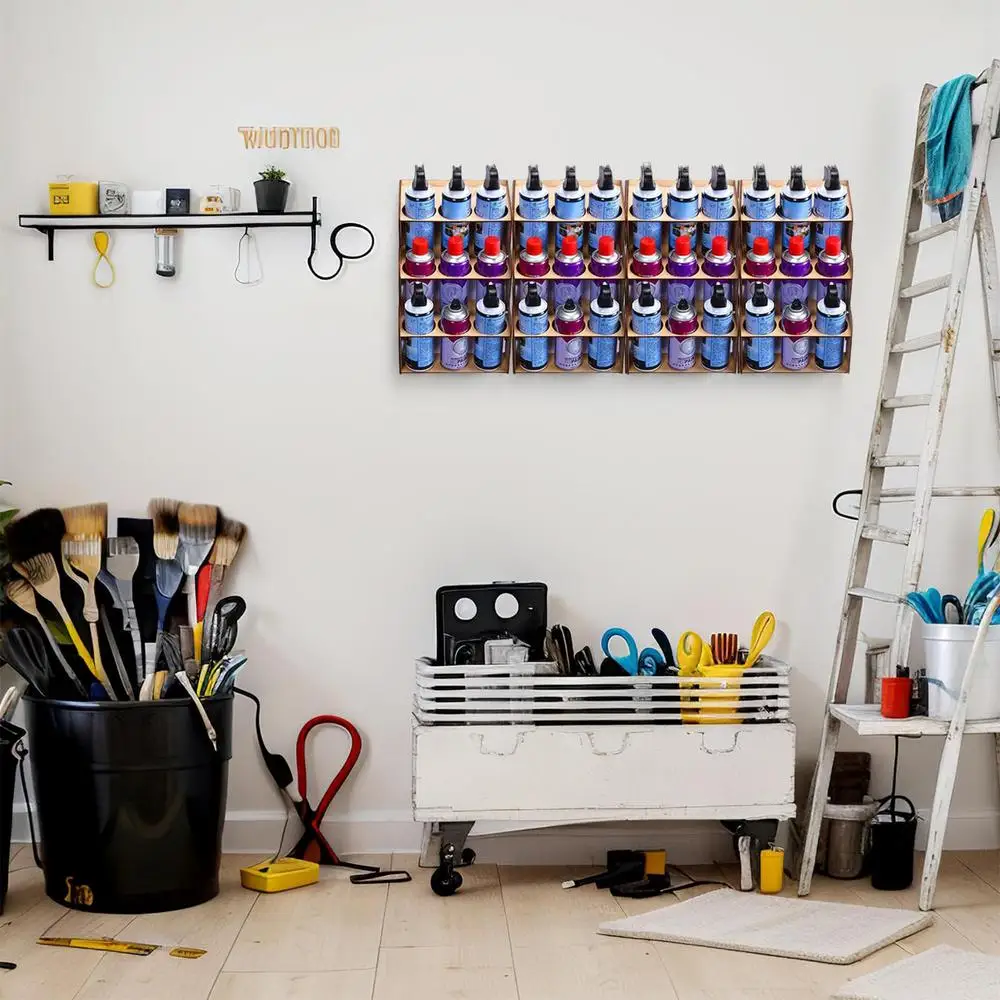 Spray Paint Organizer Wall Mounted Spray Paint Rack Paint Bottle Organizer 9-Can Paint Can Holder Spray Paint Holder For Aerosol