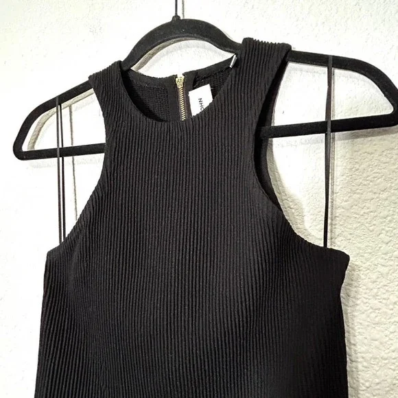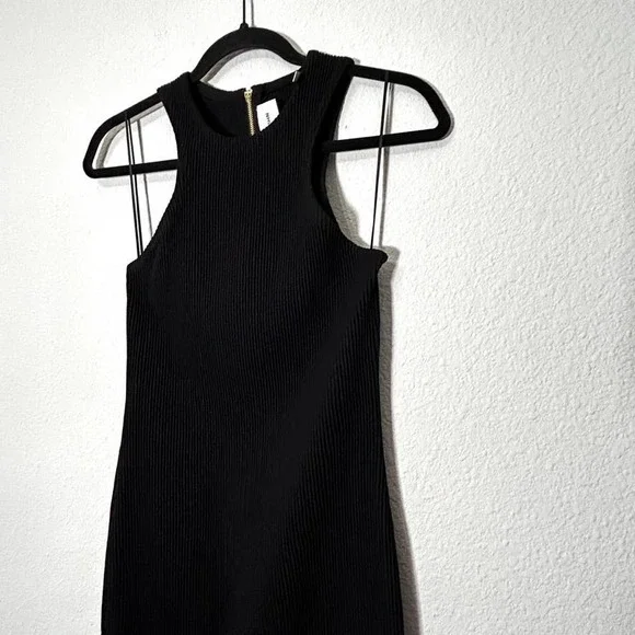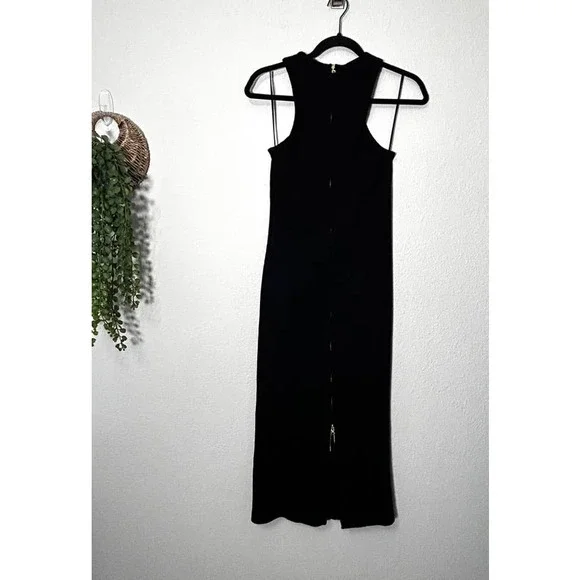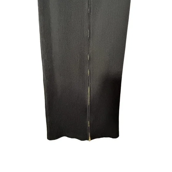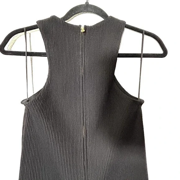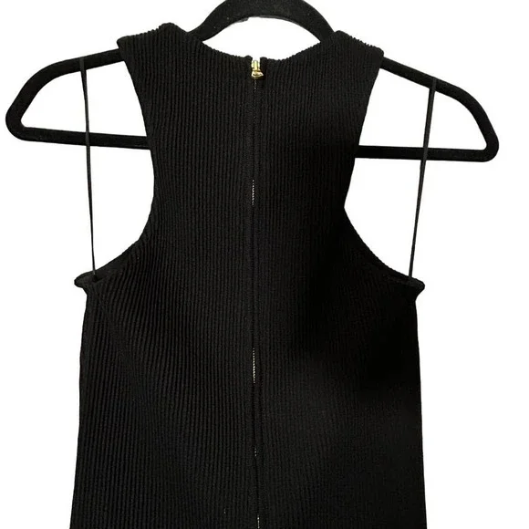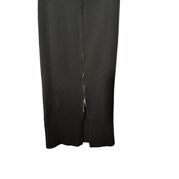 St. John Rib Knit Midi Full Zip Back Racerback Dress Black Size Small