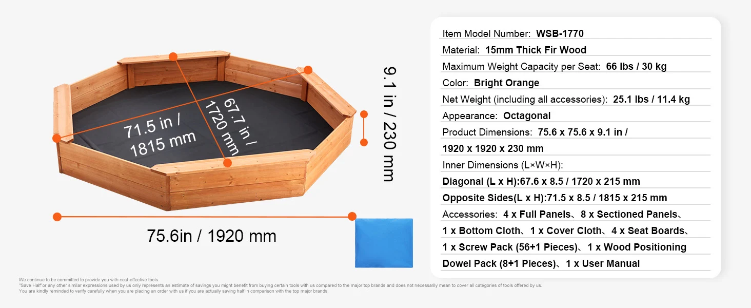 Installing the sand pit requires no complex tools and can be easily completed by one person. It comes with detailed installation instructions, allowing you to set up the sandbox quickly by following our tutorial.
