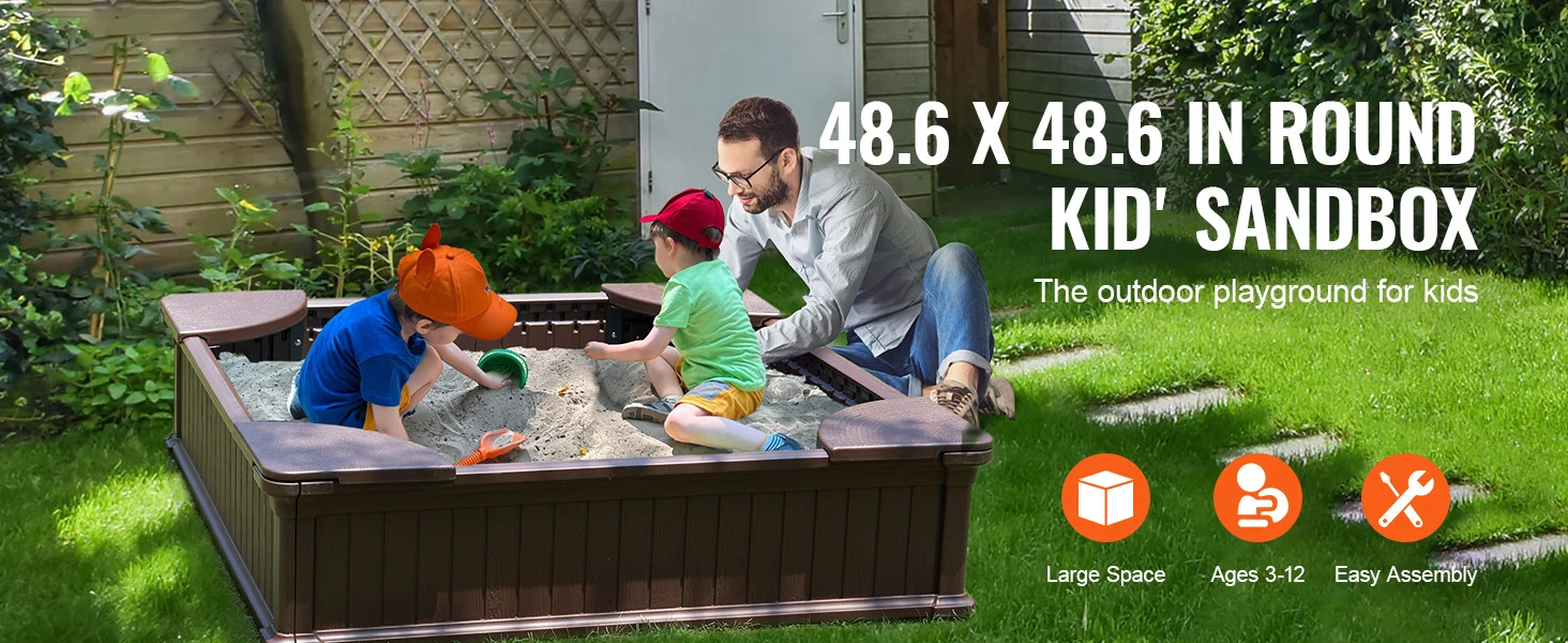 With dimensions of 48.6 x 48.6 in the sand box can accommodate 2-4 children aged 3-12 playing simultaneously. This spacious design turns your backyard into a mini playground, enhancing children's interaction, cooperation, and social skills, and fostering teamwork and communication.