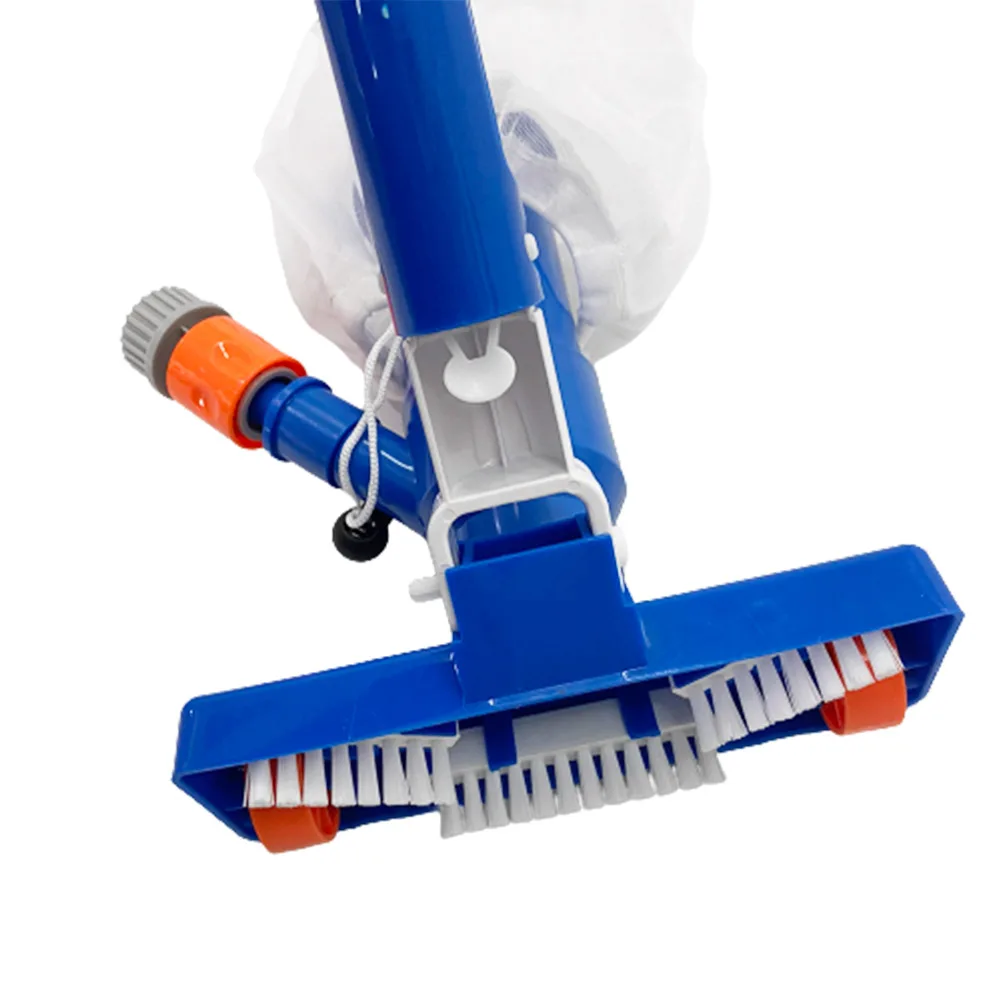 Bath Vacuum Cleaner Brush Portable Pond Fountain Vacuum Cleaner with 4 Sections Pole Easy Installation Set Household Accessories Features: 1. High-quality material: special reinforced suction head for swimming pool, used for cleaning the swimming pool and salvaging the water garbage in the pool. The product is made of high-grade PP plastic and durable 2. Convenient installation: simple design, no tools, simple and convenient use 3. Applicable occasions: Perfect for any aboveground or underground swimming pool, spa, bath, plastic film pool, water park, aquarium, fish pool, etc 4. Equipped with tools: equipped with quick hose connector, easy to connect any standard garden hose. 5. Home accessories: It is suitable for cleaning the domestic swimming pool, without requiring workers to spend more money. The machine is convenient to use and can clean up garbage at any time. Specification: Origin: Mainland China Type: Cleaner Model Number: Pool Vacuum Cleaner Product material: aluminum alloy+plastic Product color: silver+blue Product size: the height of the cleaning brush is 22cm/8.66inch, the size of the 4-section pole: 40cm/15.75inch each, and the total length is 160cm/62.99inch Package size: 45 * 25 * 6cm/17.72*9.8/4*2.36inch Type: US,EU (optional) Including: 1 * brush head, 1 * handle, 1 * quick connector, 1 * mesh bag, 1 * water inlet, 4 * rod Note: ![]()