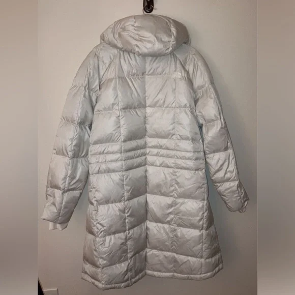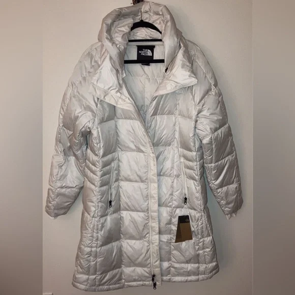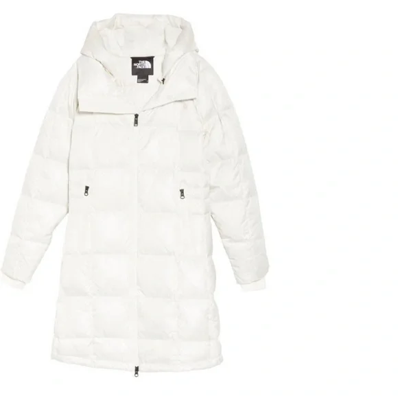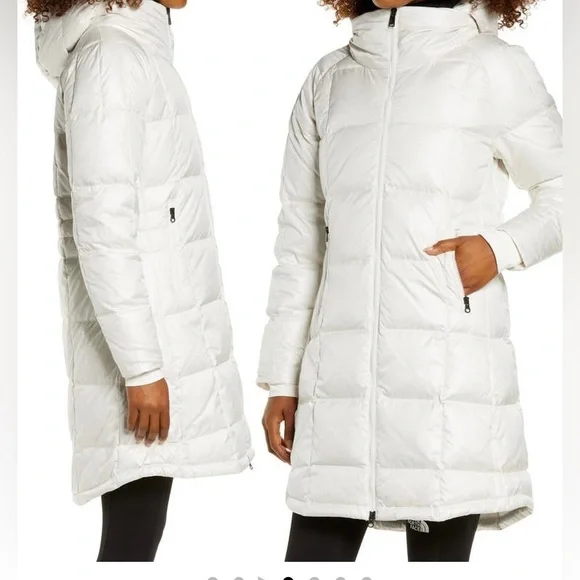 North FaceAcropolis Water Repellent 550 Fill Power Down Parka- Gardenia White*Gorgeous almost iridescent sheenMy favorite coat I have in a different size- SO warm, but not overly puffy, looks are deceiving on herTwo-way front-zip closureStand collar with removable zip-in hoodInterior banded cuffsFront zip pocketsInternal bungee-drawcord waist50-denier 73 g/m² shell with durable water-repellent (DWR) finishLined, with 550-fill-power down insulation100% nylonMachine wash, tumble dryMake a reasonable offer ☺️No trades