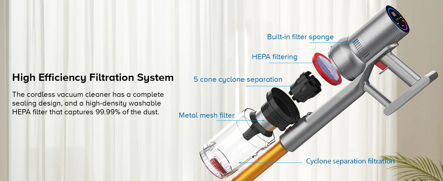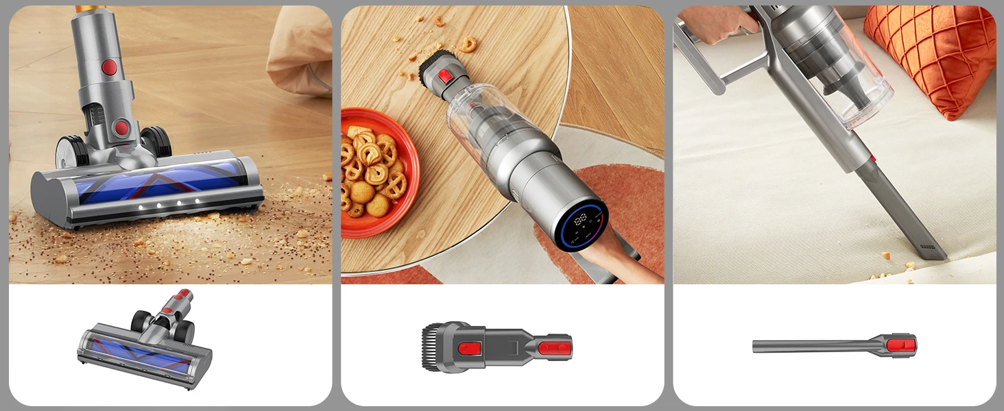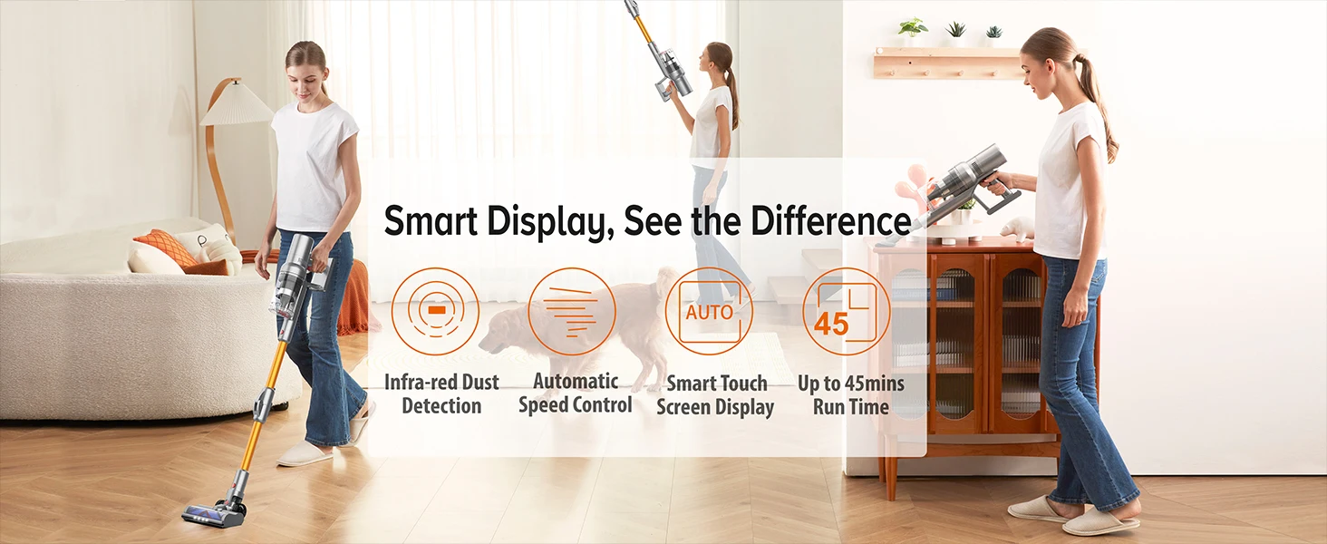 Equipped with automotive-grade power cells and intelligent power management, delivers 45-minute runtime in Eco mode (Lab-tested). Perfect for whole-house cleaning (up to 120㎡) on a single charge.