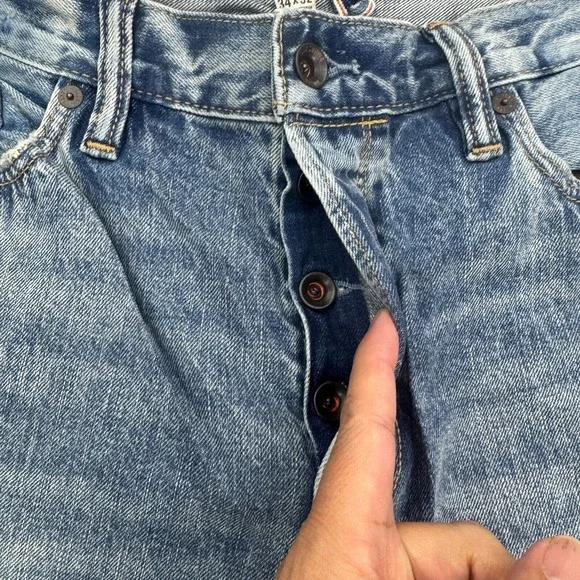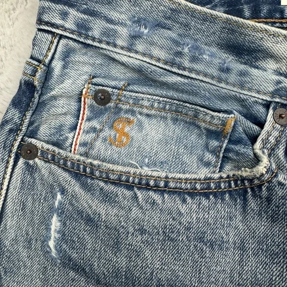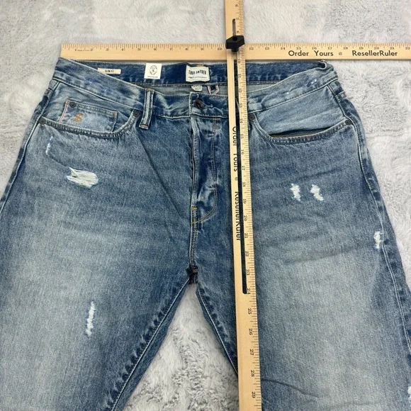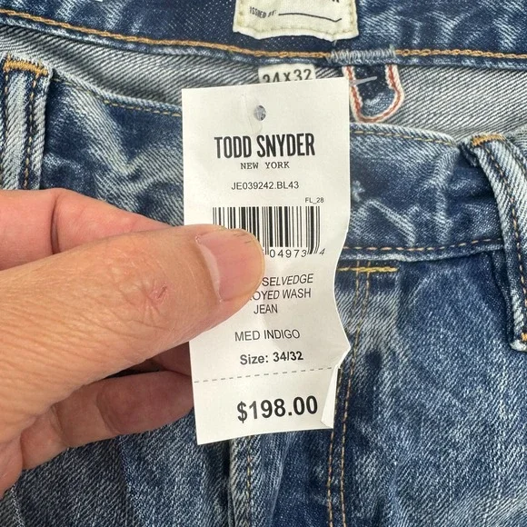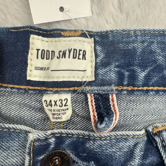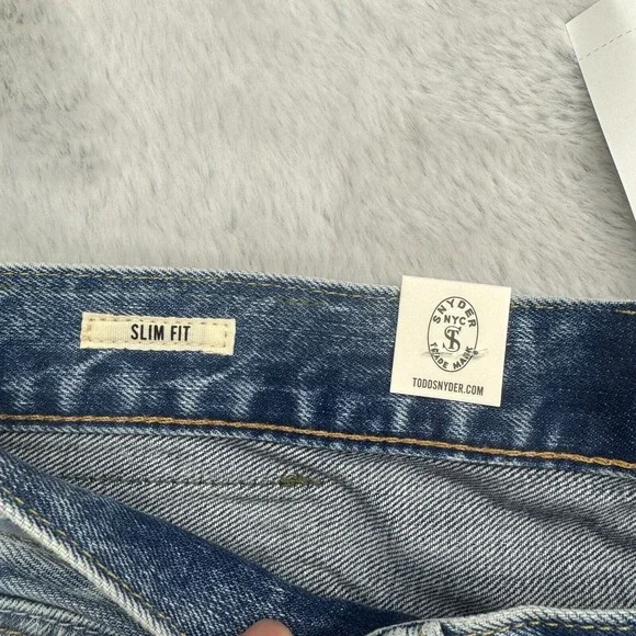 Todd Snyder Jeans Mens 34x32 Blue Denim Selvedge Destroyed Wash Slim Button Fly.9030 * Items are carefully inspected but if we miss something, we do have free returns.* Please note, item measurements are approximate and in the photos. Previous washings may change the sizing. Please compare our measurement photos to your favorite garments to ensure fit.* Colors remain vivid, we store our items in a pet and smoke free environment * If the item is pre-owned, it's cleaned per eBay standards.* We ship daily and have free returns. No questions asked.* Thank you!