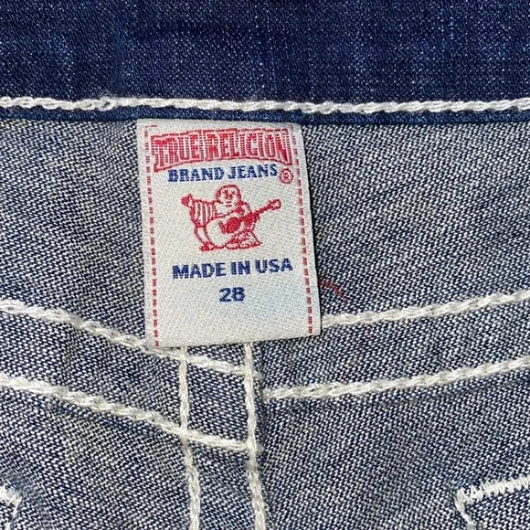Who’s ready for short short season!??*True Religion mid-rise denim shorts w/cuffed hem & diamond details/buttons *Color - Dark blue wash w/white stitching Size - 28*Classic 5 pockets w/horseshoe stitching; Cuffed hem; Mid-rise; Diamond buttons/details *Final sale item *Serious inquiries only please*Price negotiable; Accepting offers