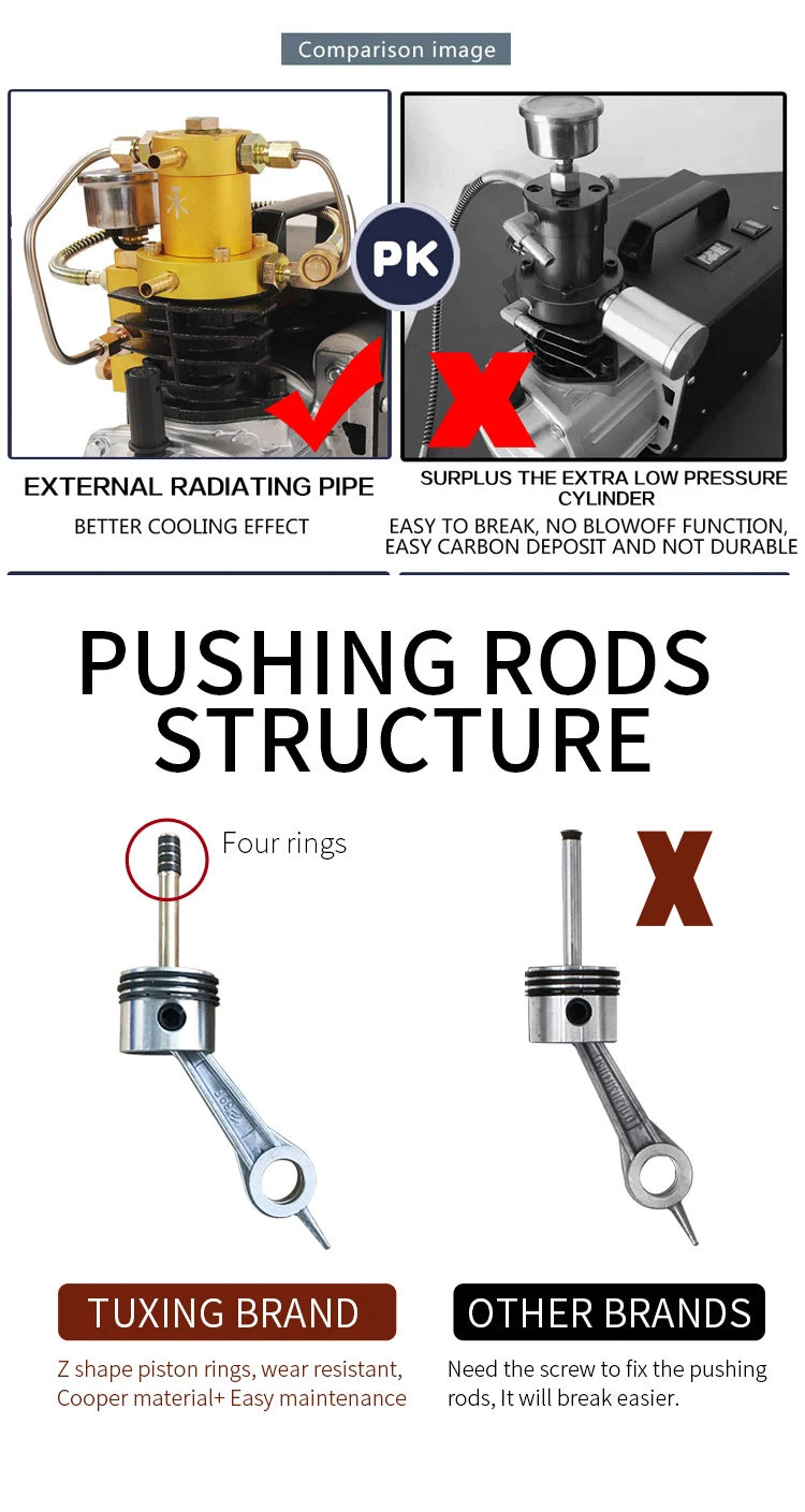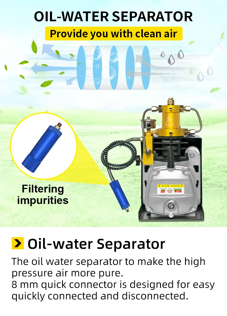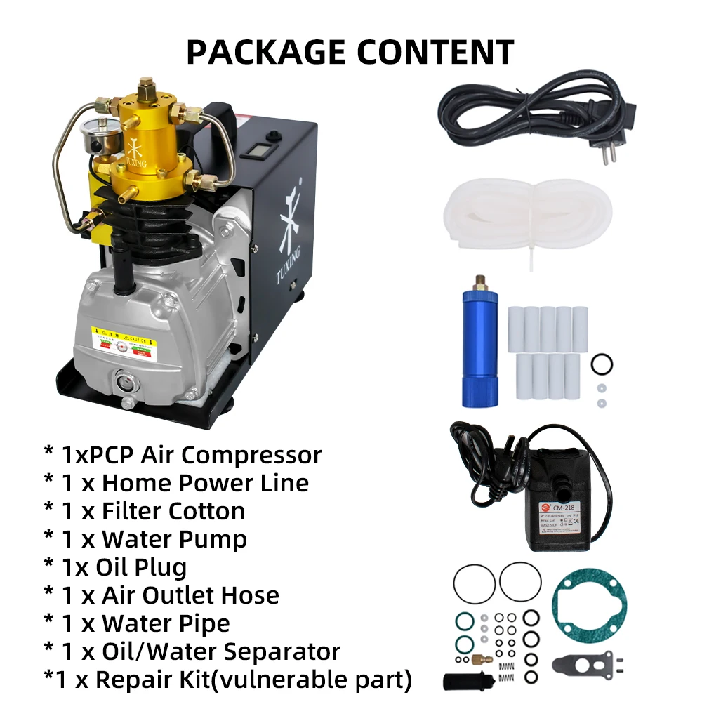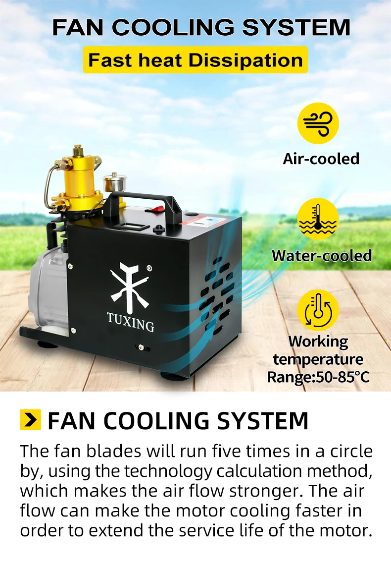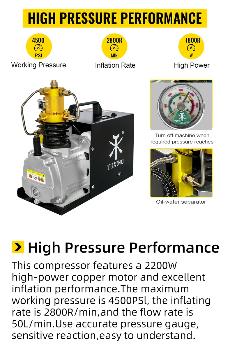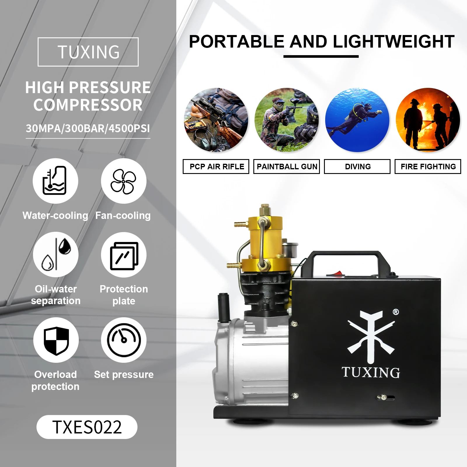 TUXING TXES022 300Bar PCP Air Compressor 4500Psi Electric High Pressure Air Compressor Auto Stop for Scuba Diving PCP Rifle