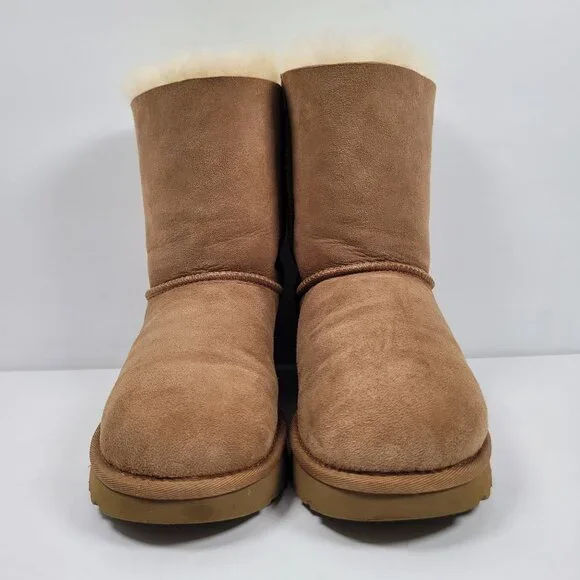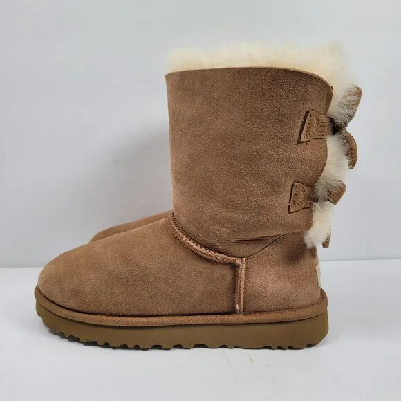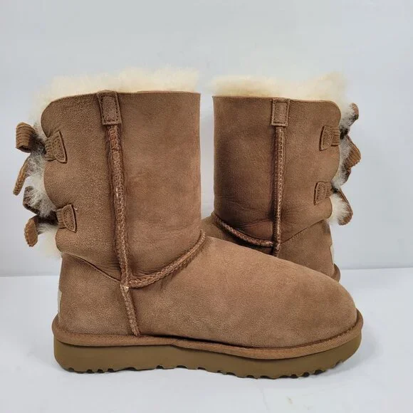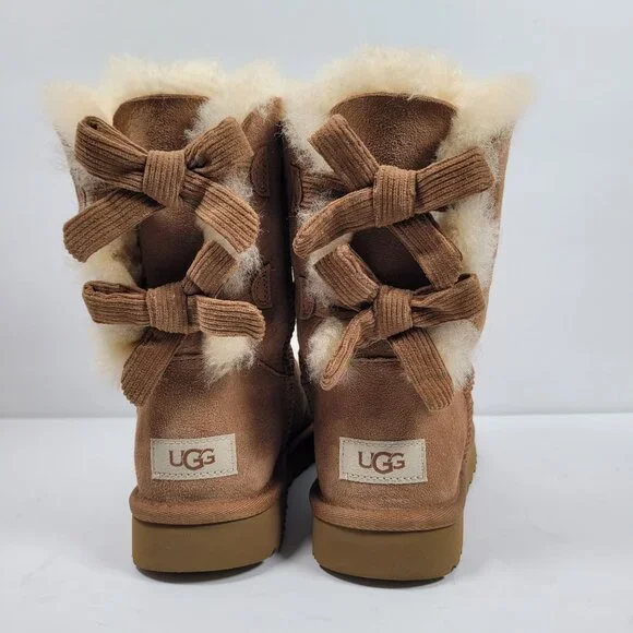 UGG Bailey Bow Corduroy Women's Brown Suede Boots S/N1094312 US Size 7Cozy and stylish, the UGG Bailey Bow boots offer warmth and comfort with their plush sheepskin lining. The suede exterior and charming bow detail provide an elegant touch, making them a fashionable choice for cold weather.• Bow detailing on the back• Durable outsole for traction• Easy slip-on design• Mid-calf lengthGently used. In great condition.Please inspect photos for any signs of cosmetic and/or general wear. We take our own photos. The actual shoe you will be receiving will be the one pictured.Our home is smoke free. Shoes are sanitized as part of the cleaning process.Will be shipped with Original Box.