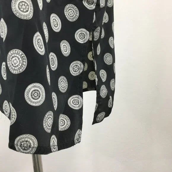 Great condition. Pls read about SIZING.Measurements ( approx. ) one side, while item is laying flat on surface - NOT stretched.Bust (armpit to armpit): 22.5"Length: 30" from top of back.Sleeve: 7"ADDITIONAL INFO:No sizing label, could be a Medium or Large. Pls check measurements for proper fit.One pocket with embroidery on it and a small red printed fabric inside of it.Slit on sides of hem.FROM PET/SMOKE FREE ENVIRONMENT.THANK YOU FOR SUPPORTING OUR SMALL FAMILY BUSINESS - WE TRULY APPRECIATE YOU!!pmb2f.