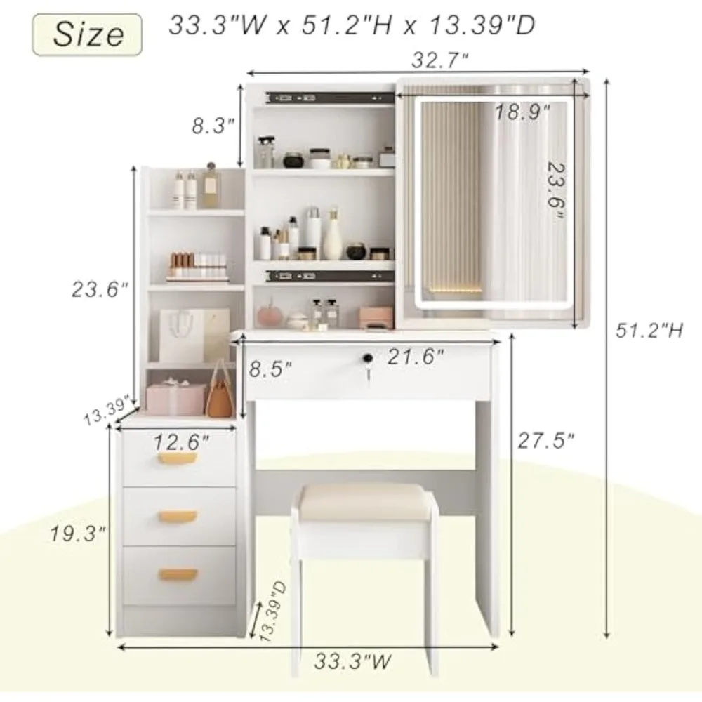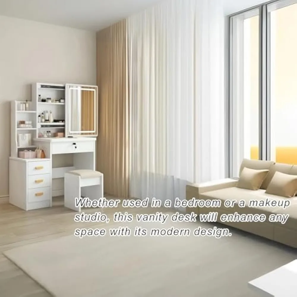 • Multifunctional Vanity Set: Surprise your loved ones with this elegant dressing table that combines functionality and style. Whether for personal use in your bedroom or dressing room or for commercial use in a makeup studio, this desk enhances any space with its modern design.