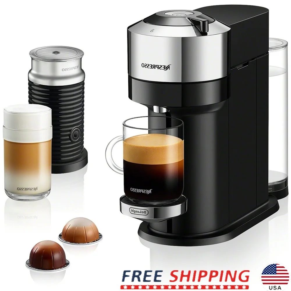 by De'Longhi introduces the Vertuo Next Premium, the latest Vertuo  coffee maker, which features an all-new design for the ultimate brewing experience.  In addition to its original espressos, this machine produces an extraordinary cup of coffee with a smooth layer of crema - the signature of a truly great cup of coffee.  Just insert a Vertuo capsule and close the lever.  When activated, the capsule spins up to 7,000 rotations per minute, blending ground coffee with water and producing the perfect crema to enjoy quality coffee in larger cup sizes.  The machine delivers the optimal in-cup results for each blend using capsule-specific brewing with barcode reading.  Use the included Aeroccino milk frother to make delicious cappuccinos and lattes with perfectly steamed milk.  Plus, a convenient tasting kit with 12  Vertuo capsules is included to get you started.