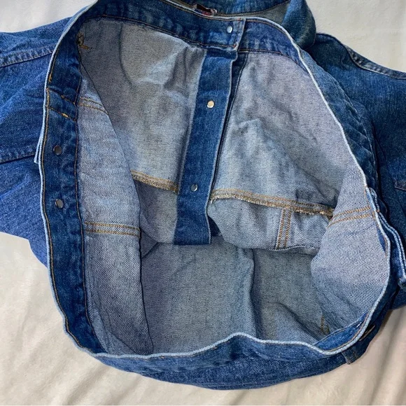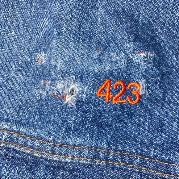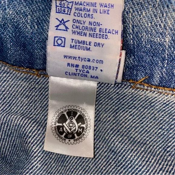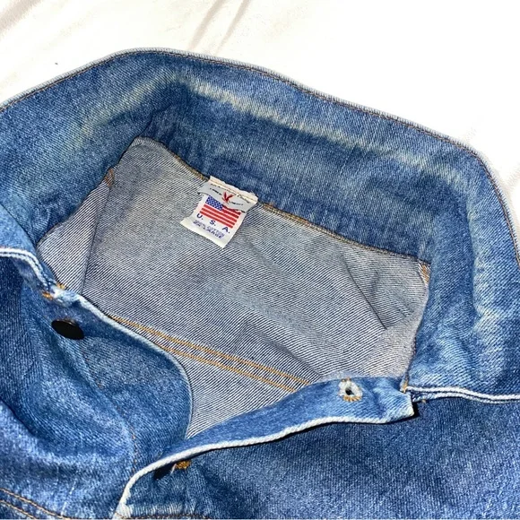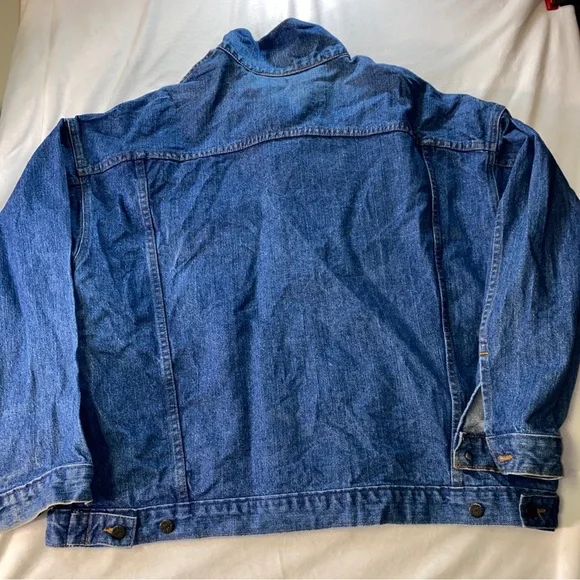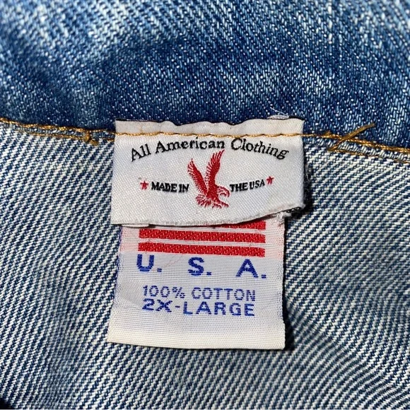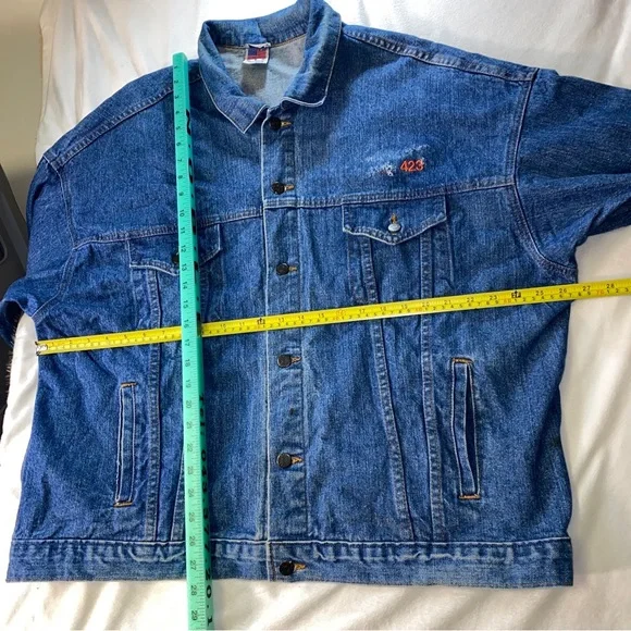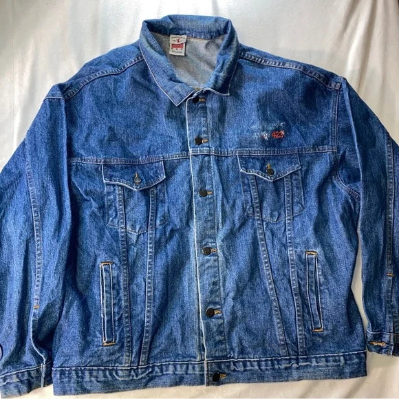 Pre-owned Good overall conditionTyca buttons Mens Size 2XLSmoke free Odor Free Freshly washed/air dry ready to wear!**Stain near bottom side/back pointed out**Some distressing near the 423Perfectly Faded collarMeasures approximately26.5” pit to pit27.5” top of shoulder to bottomDenim jacket made in USAVintage