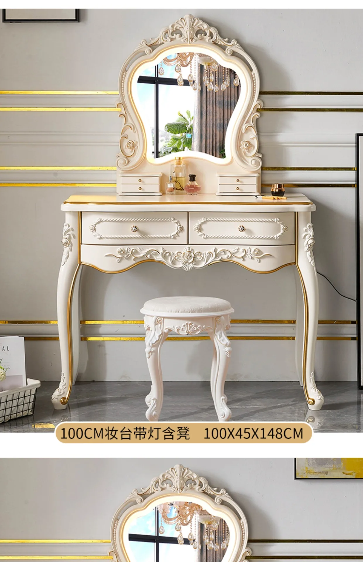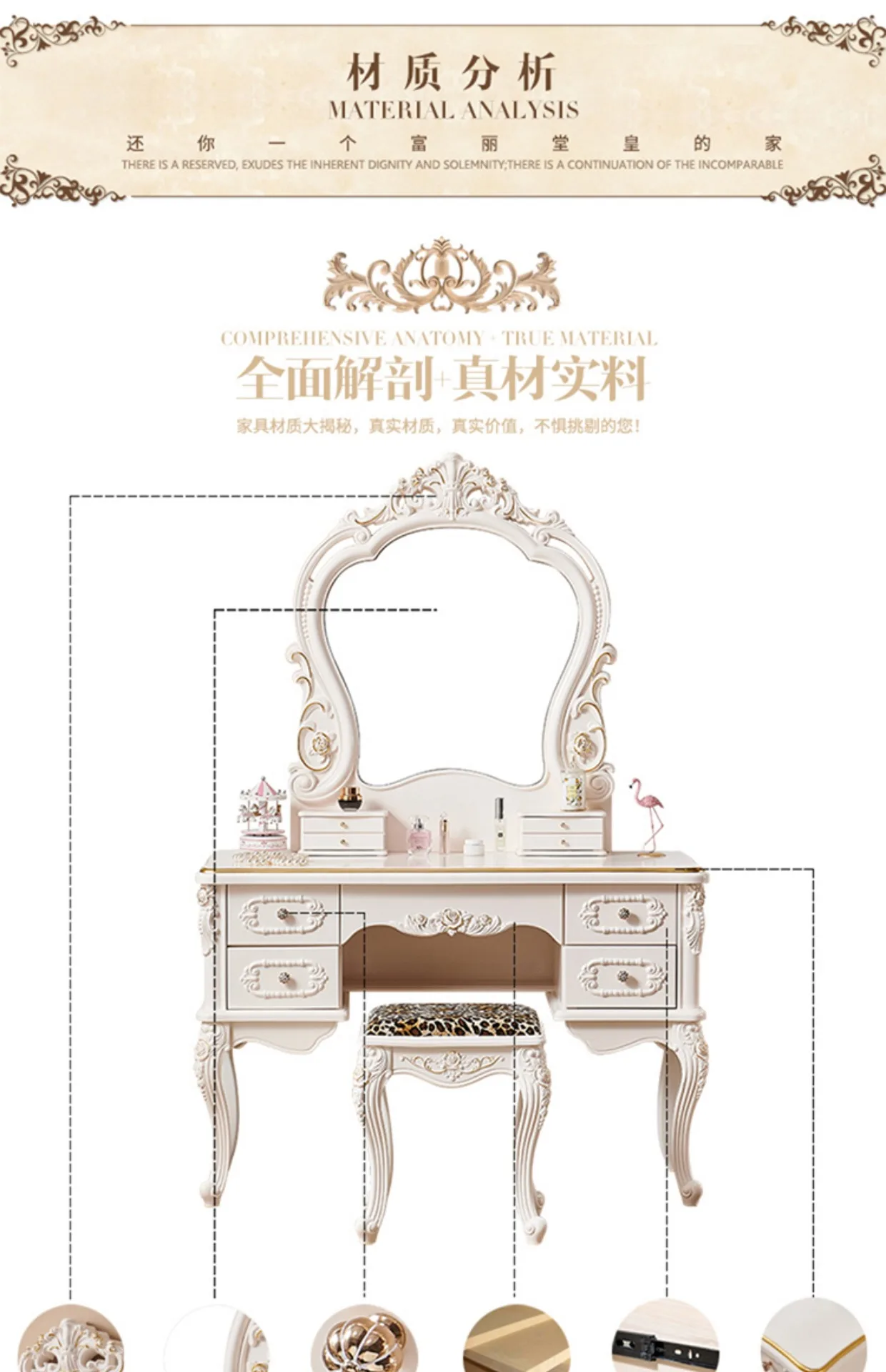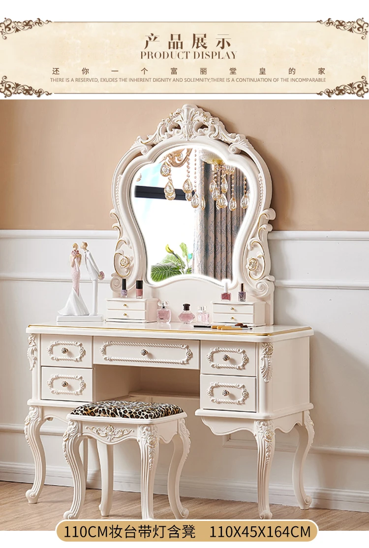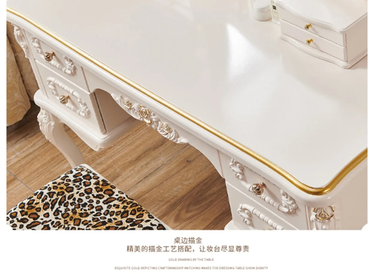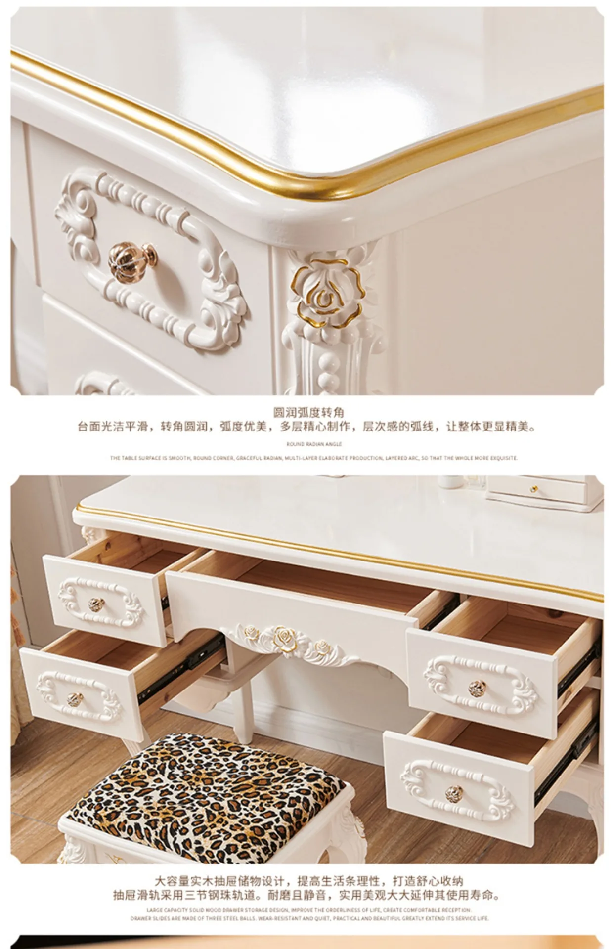 Woman Dressing Table with Glass Plate Stool Toilet Makeup Cabinet with Mirror Dresser Furniture for Room Sinfonier Komode Banity