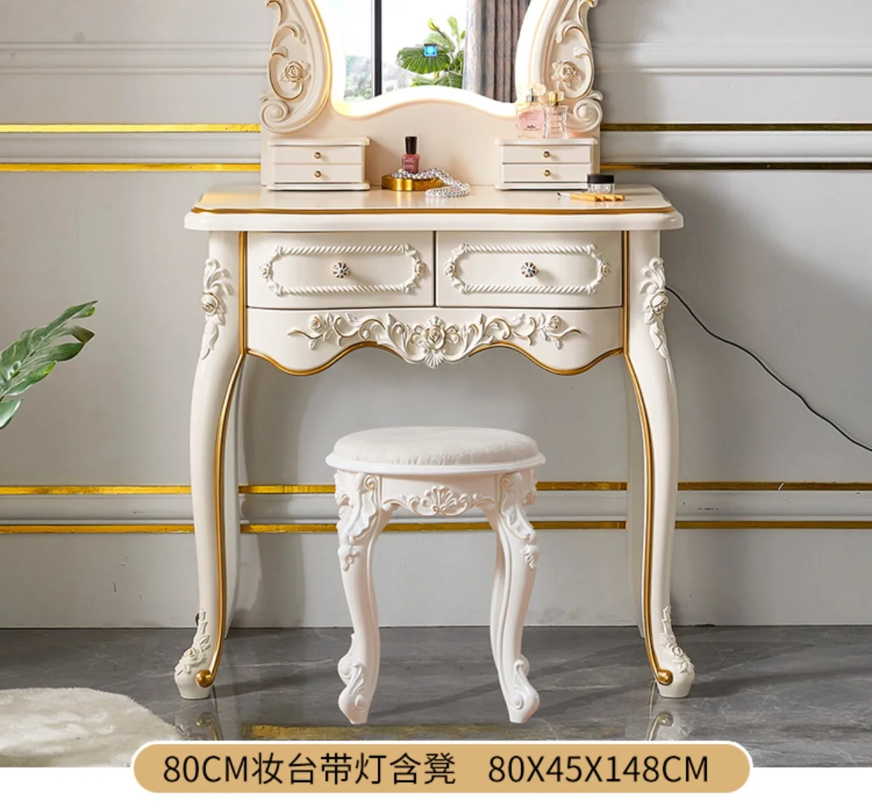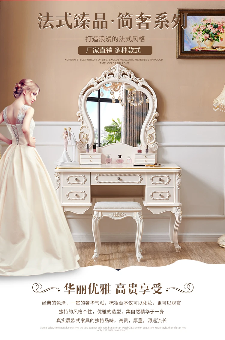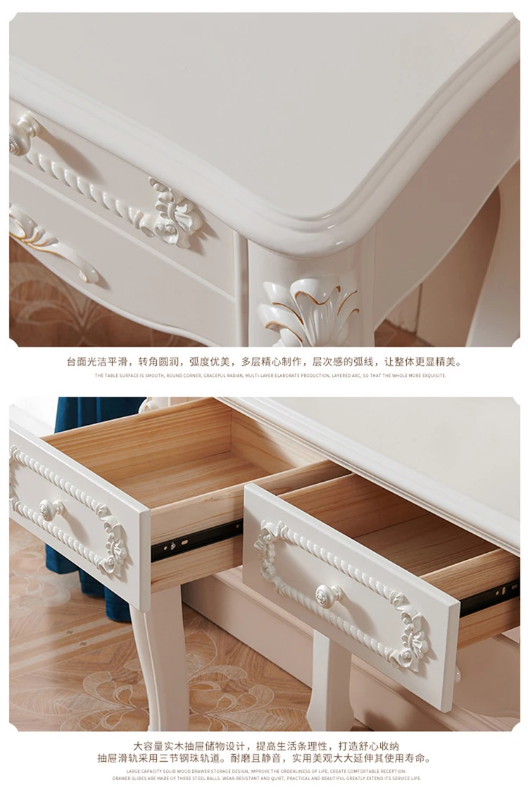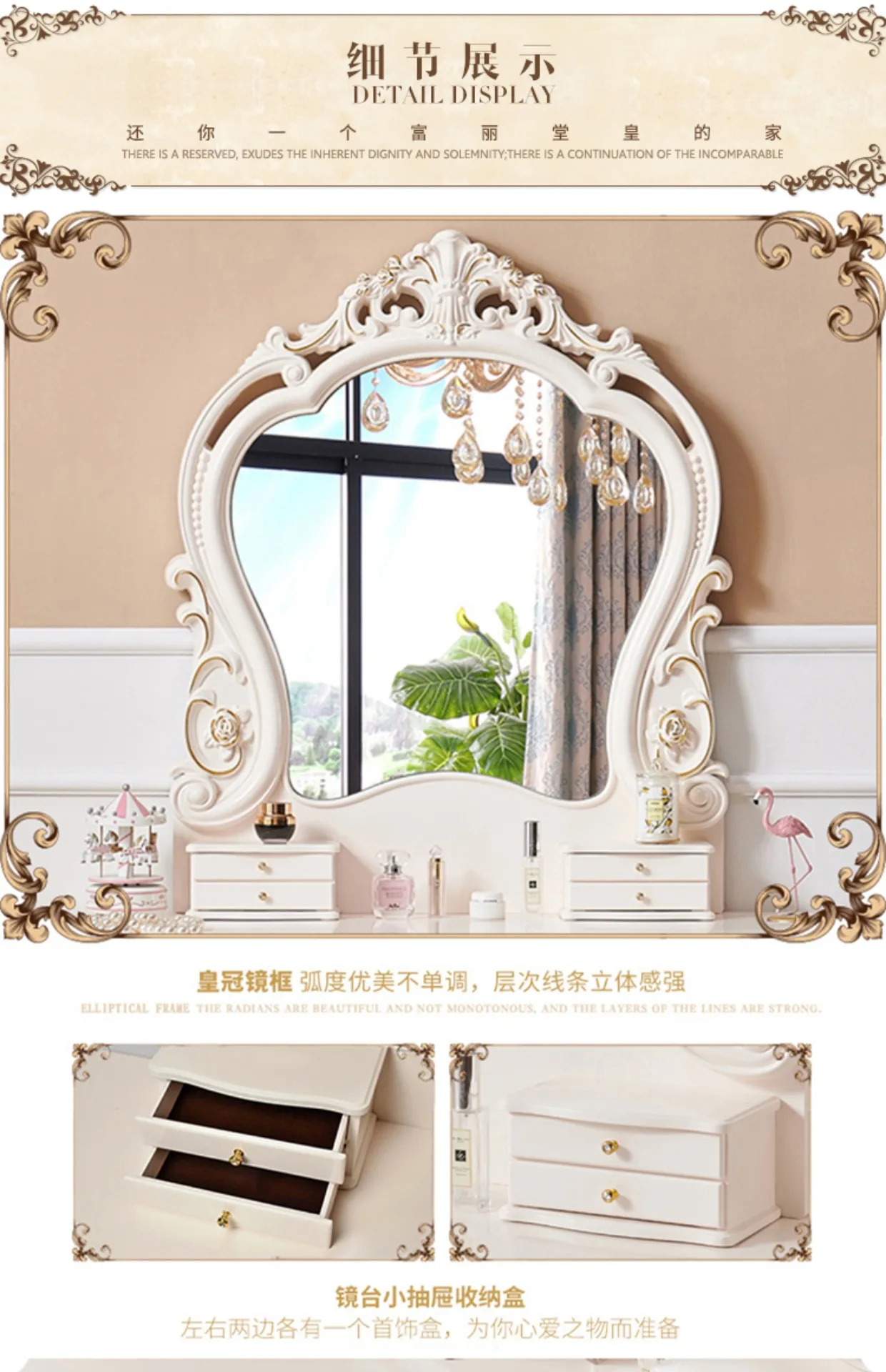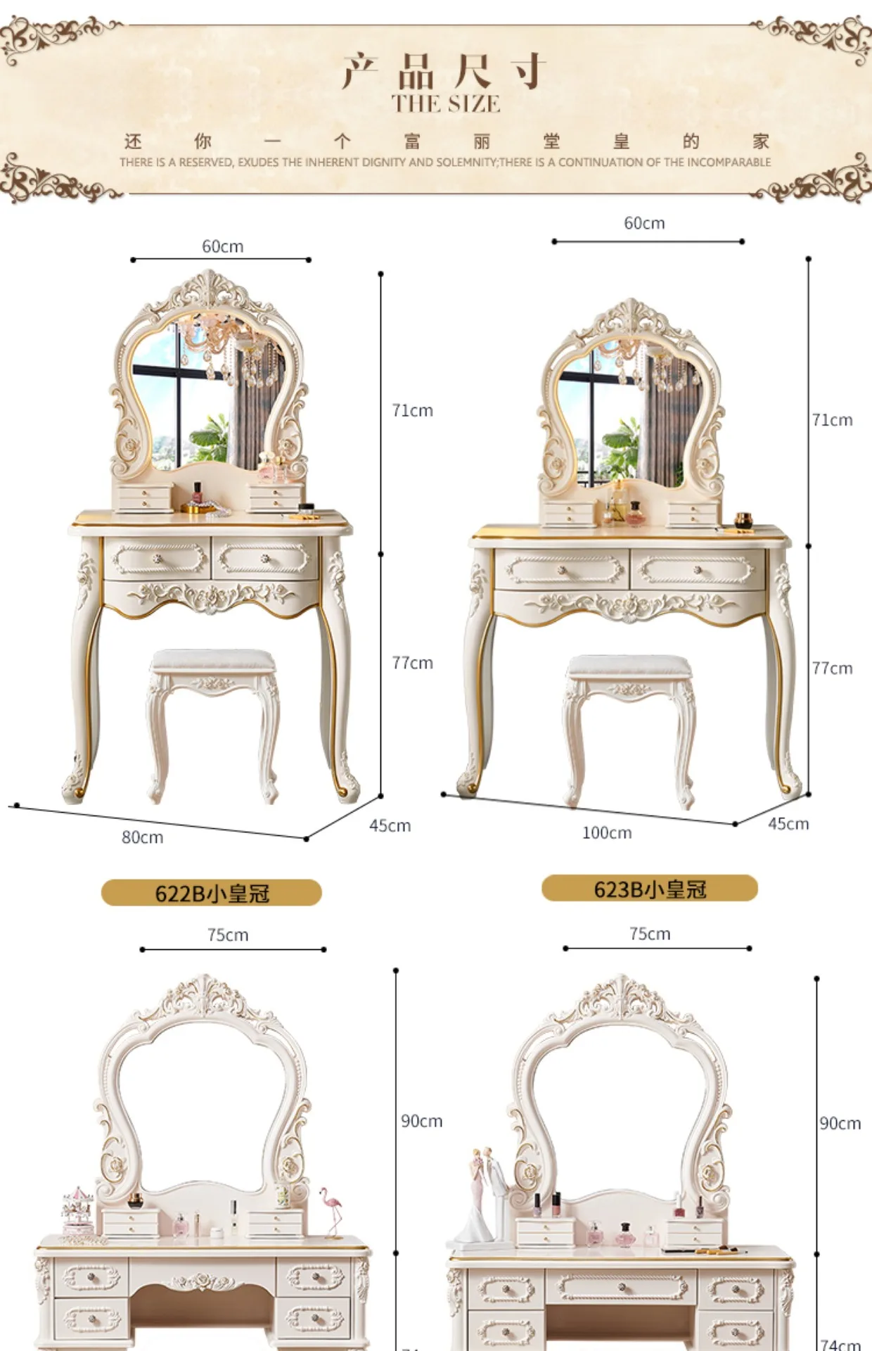 Woman Dressing Table with Glass Plate Stool Toilet Makeup Cabinet with Mirror Dresser Furniture for Room Sinfonier Komode Banity