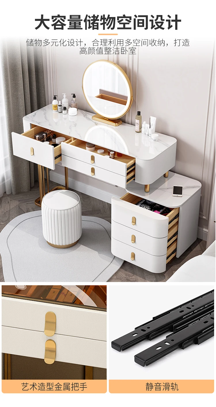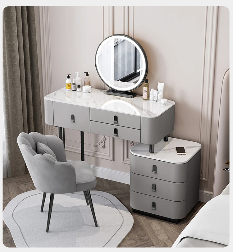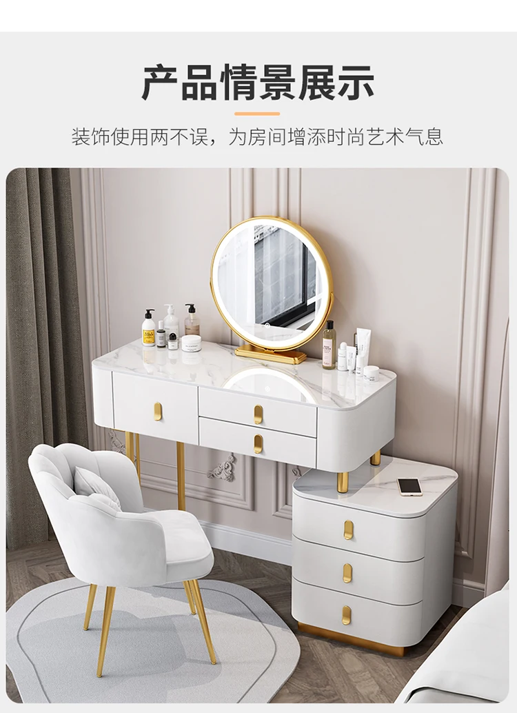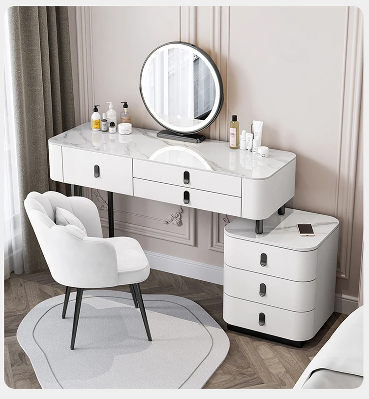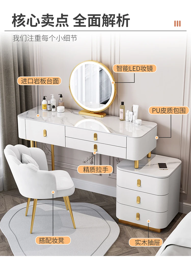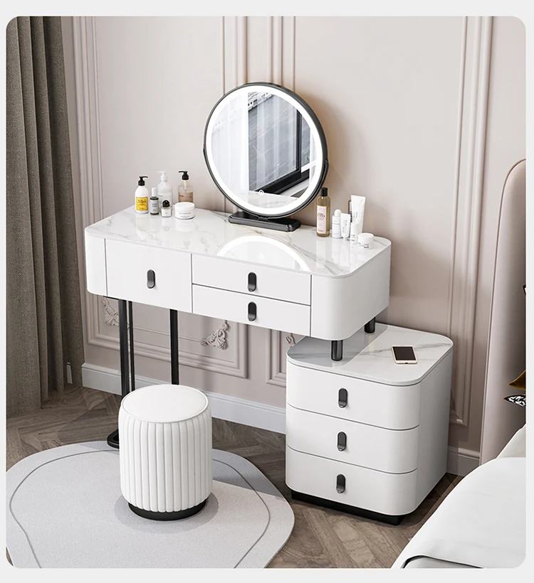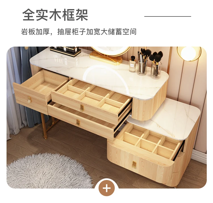 Wood Shelf Mirror Vanity Table Storage Modern Desgin Cosmetics Beauty Dressing Table System Comfortable Penteadeira Furniture