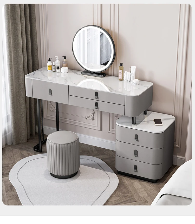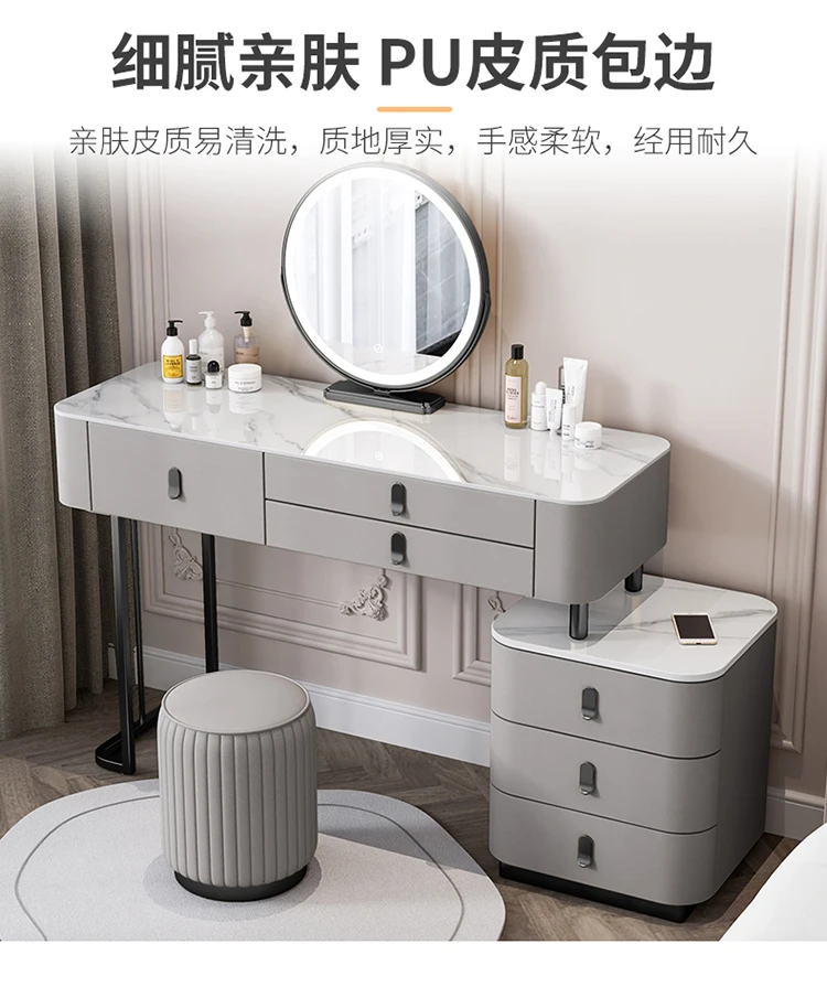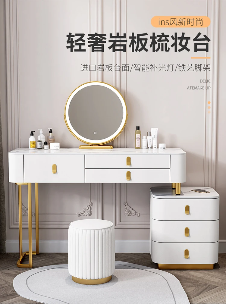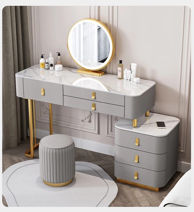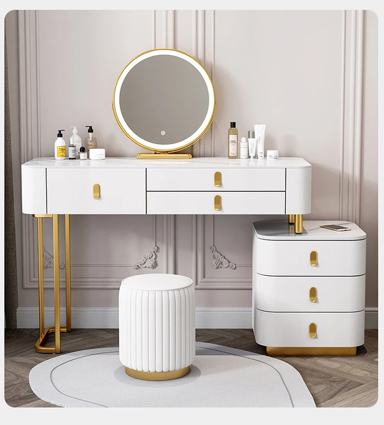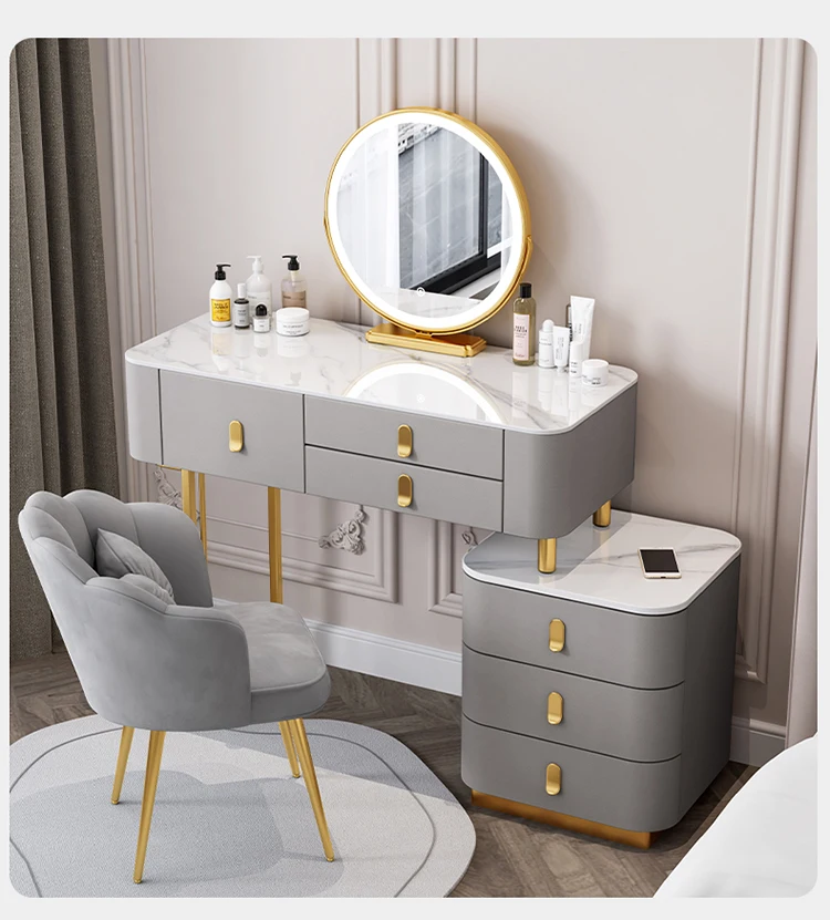Wood Shelf Mirror Vanity Table Storage Modern Desgin Cosmetics Beauty Dressing Table System Comfortable Penteadeira Furniture