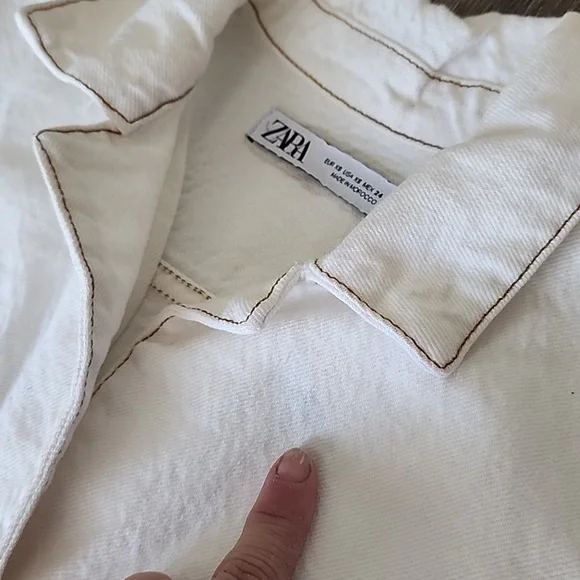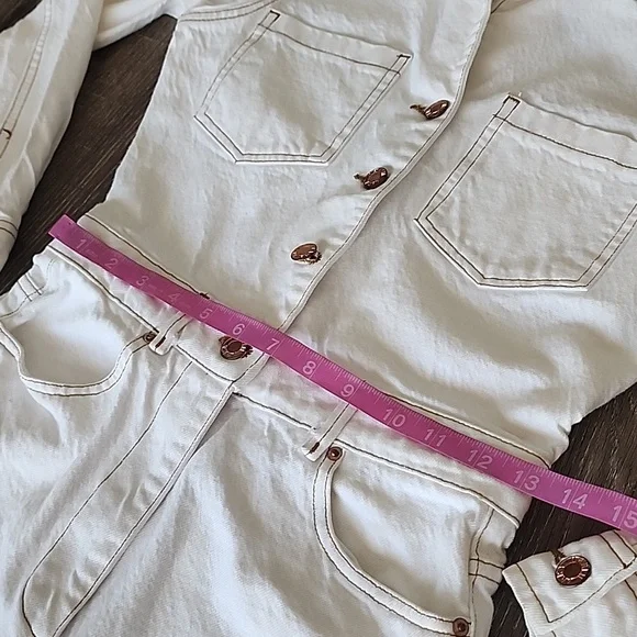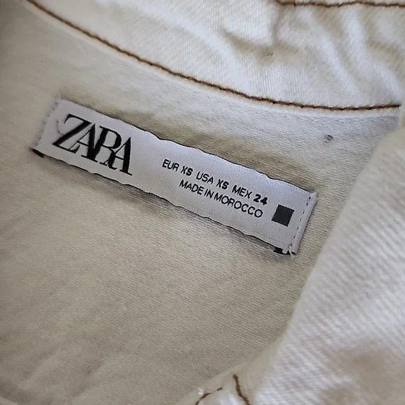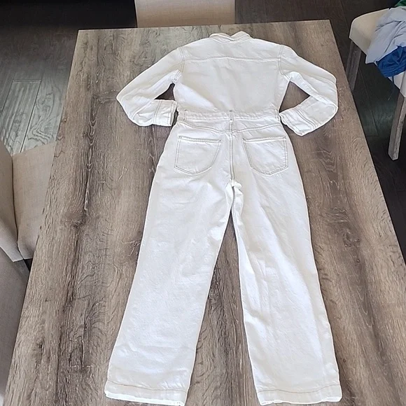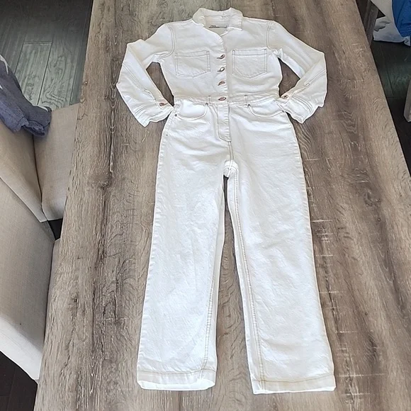 Zara Cotton Denim Jumpsuit Boilersuit with Contrast Topstitching XS Cream Jean