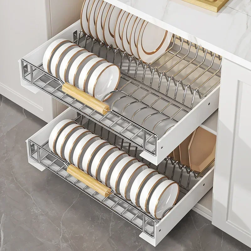 ZEXEF Kitchen Pull-Out Bowl and Dish Rack Cabinet Storage Rack Household Tableware Bowl and Dish Partition Drawer Storage